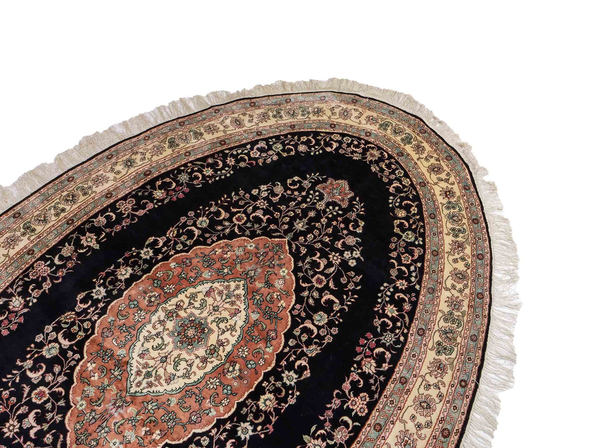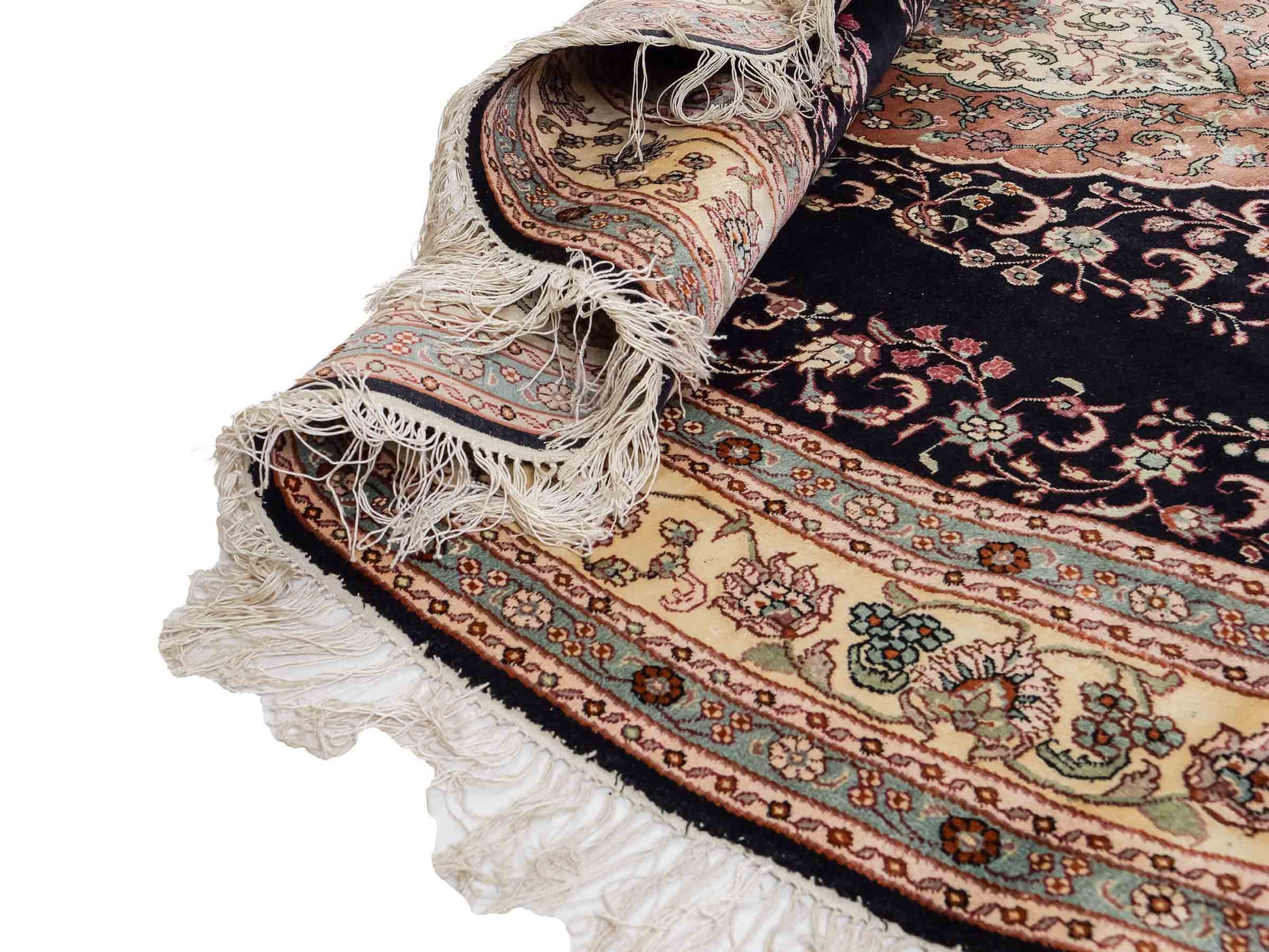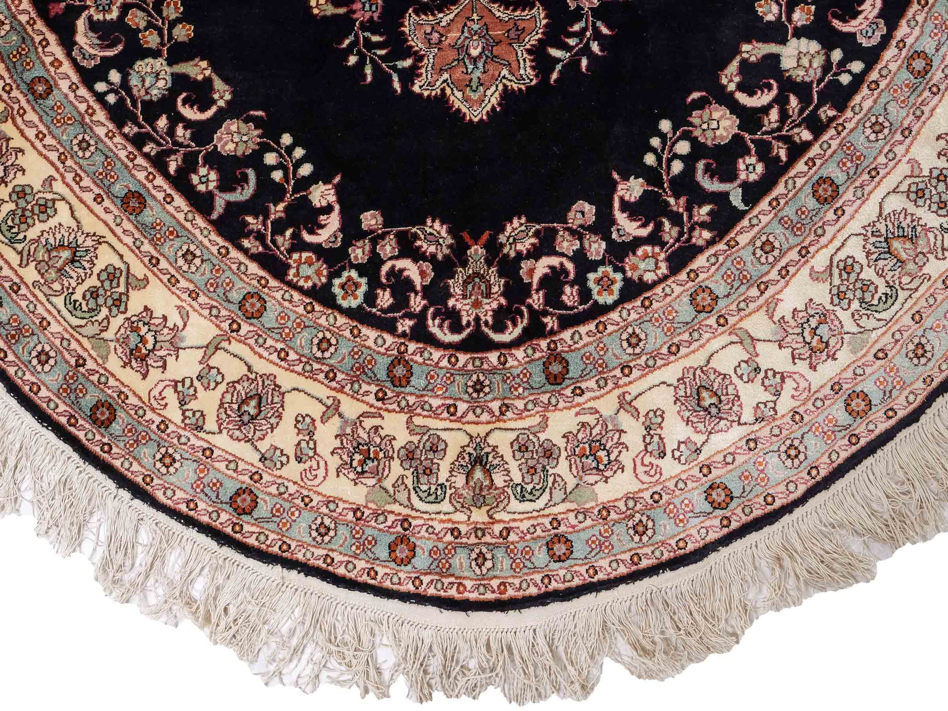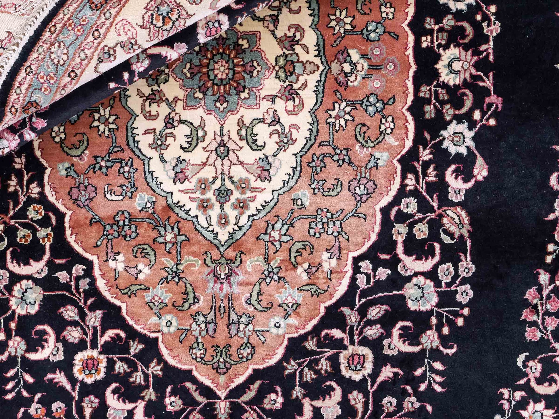 In traditioneller Handarbeit in China gefertigt, beeindruckt dieses Unikat durch sein klassisches Ghom Design sowie seine zeitlose Farbpalette.