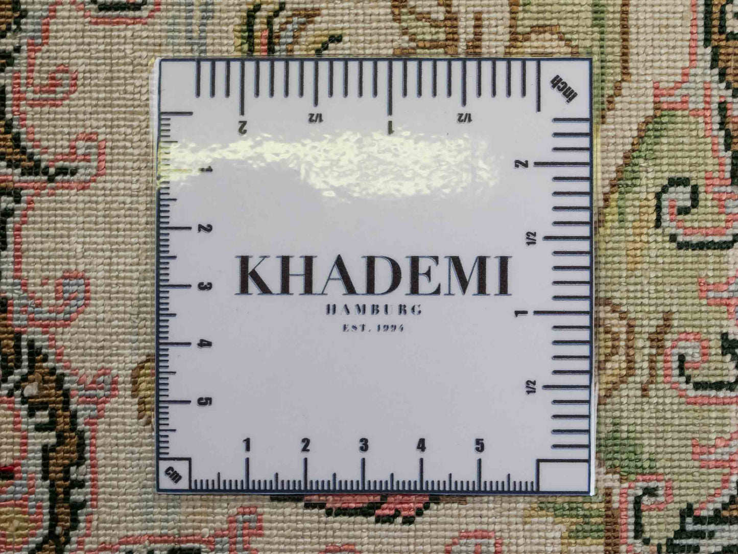 Bekannt durch die Seidenstraße blickt das Ursprungsland dieses aus chinesischer Meisterhand stammenden Unikats zurück auf eine überaus traditionsreiche Knüpfkultur. Neben seiner herausragenden Qualität und bemerkenswerten Anzahl an Knoten zeichnet sich dieses Exemplar durch sein zeitloses Ghom Design und seine Detailverliebtheit aus.