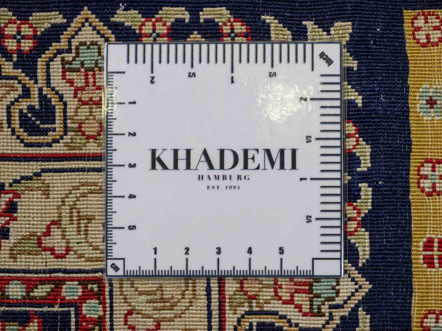 Bekannt durch die Seidenstraße blickt das Ursprungsland dieses aus chinesischer Meisterhand stammenden Unikats zurück auf eine überaus traditionsreiche Knüpfkultur. Neben seiner herausragenden Qualität und bemerkenswerten Anzahl an Knoten zeichnet sich dieses Exemplar durch sein zeitloses Ghom Design und seine Detailverliebtheit aus.