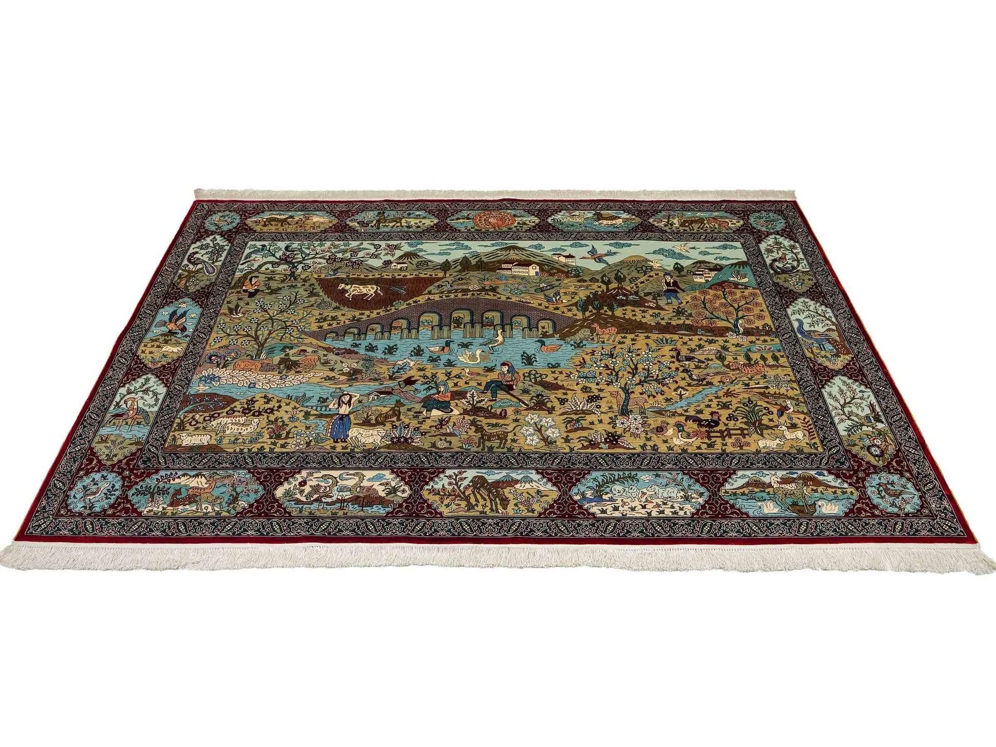 Dieser Seidenteppich ist perfekt für anspruchsvolle Kunden mit einem feinen Sinn für Kunst und Design. Gönnen Sie sich das Beste für Ihr Zuhause und setzen Sie stilvolle Akzente mit diesem einzigartigen Teppich.