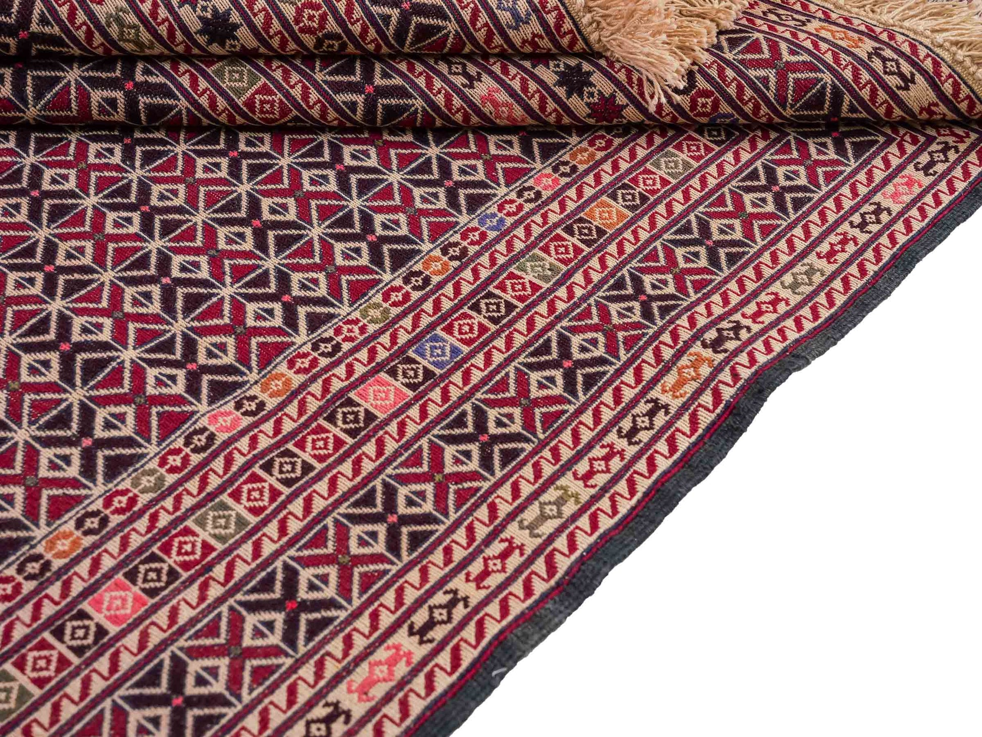 Kelim Afghan Teppiche stammen aus Afghanistan und sind für ihre flache Webstruktur und lebendige Farbgestaltung bekannt. Diese Teppiche bieten eine frische Perspektive auf die traditionelle Teppichkunst und bringen eine dynamische Atmosphäre in jedes Zuhause.