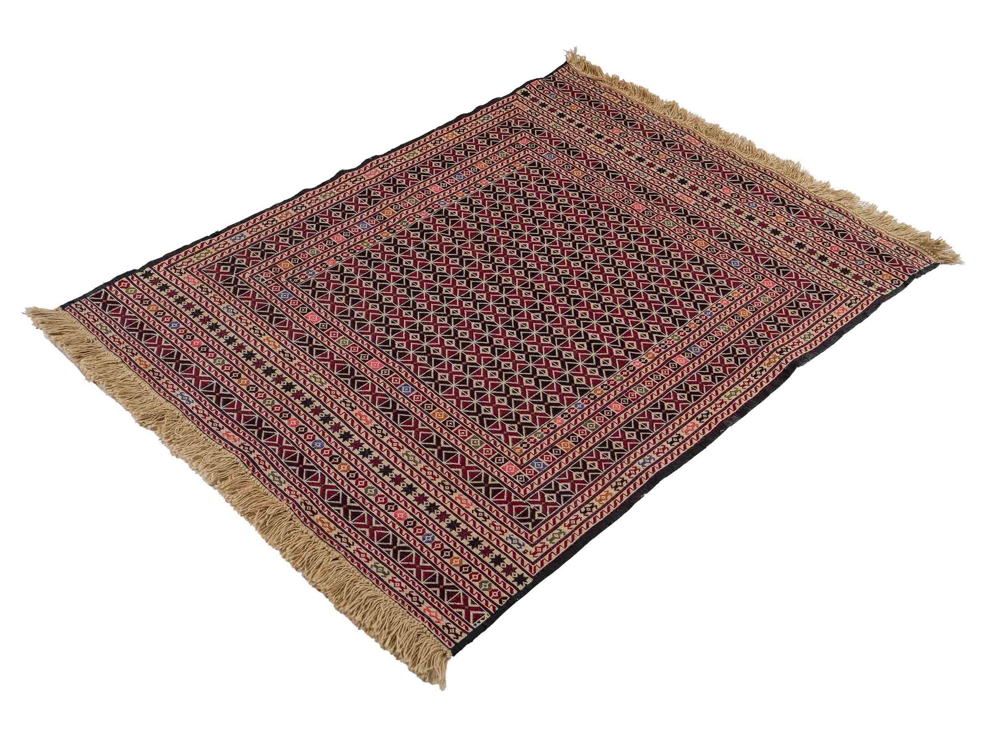 Die Kelim-Technik hat eine lange Geschichte und ist in vielen Regionen Afghanistans verbreitet. Diese flach gewobenen Teppiche wurden entwickelt, um sowohl praktisch als auch ästhetisch ansprechend zu sein, und verkörpern die Kreativität und das handwerkliche Geschick der texilverarbeitenden Gemeinschaften.
