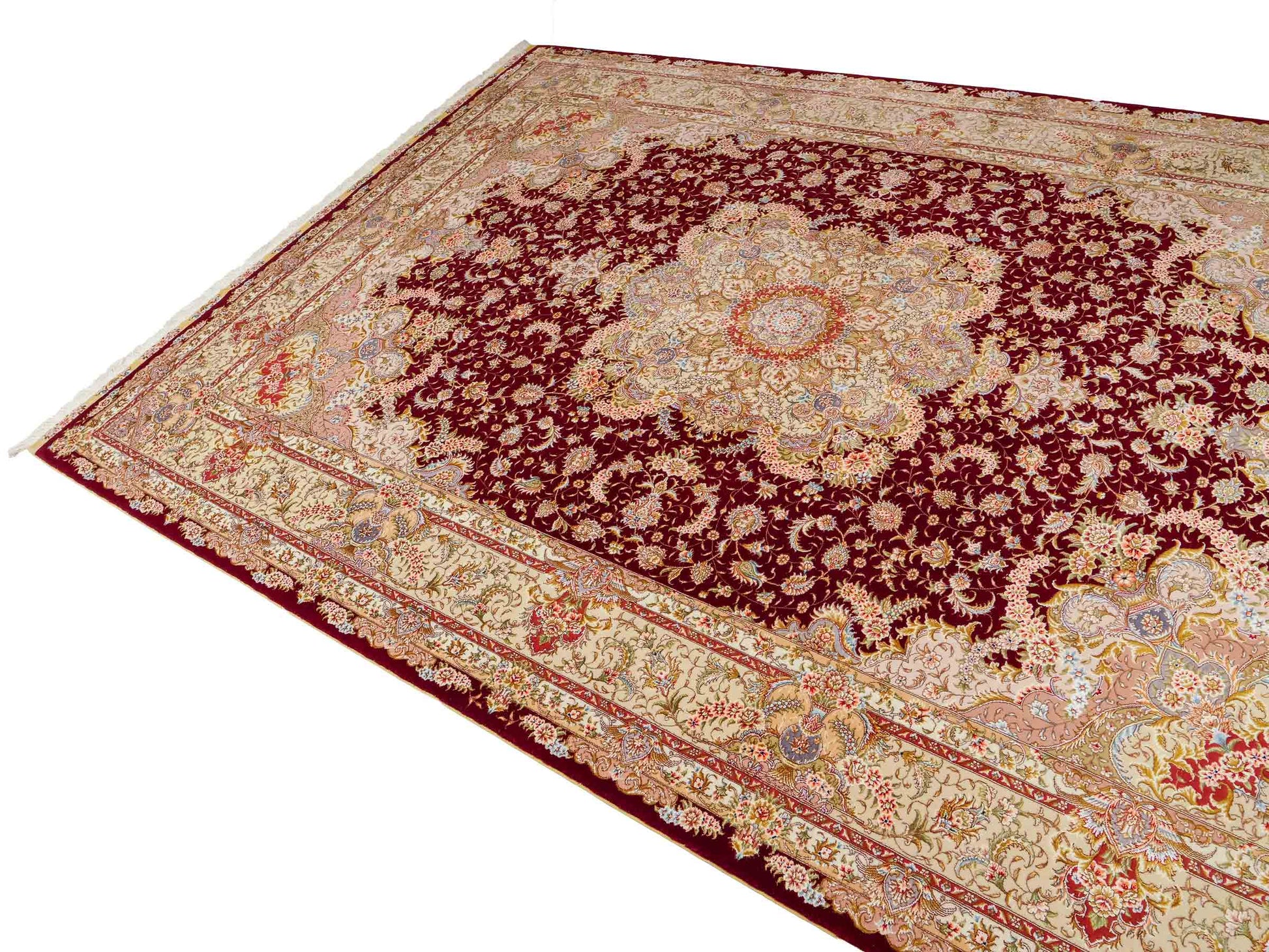 Bekannt durch die Seidenstraße blickt das Ursprungsland dieses aus chinesischer Meisterhand stammenden Unikats zurück auf eine überaus traditionsreiche Knüpfkultur. Neben seiner herausragenden Qualität und bemerkenswerten Anzahl an Knoten zeichnet sich dieses Exemplar durch sein zeitloses Täbriz Design und seine unbeschreibliche Detailverliebtheit aus.