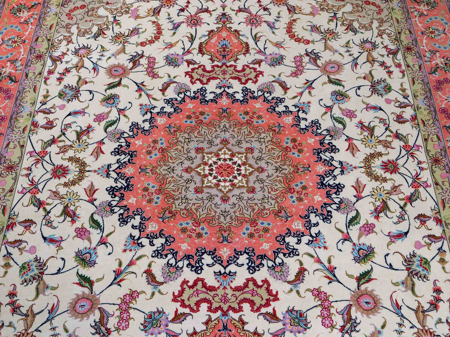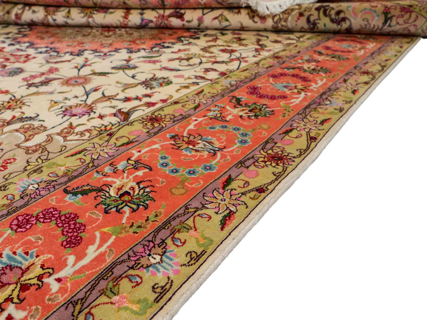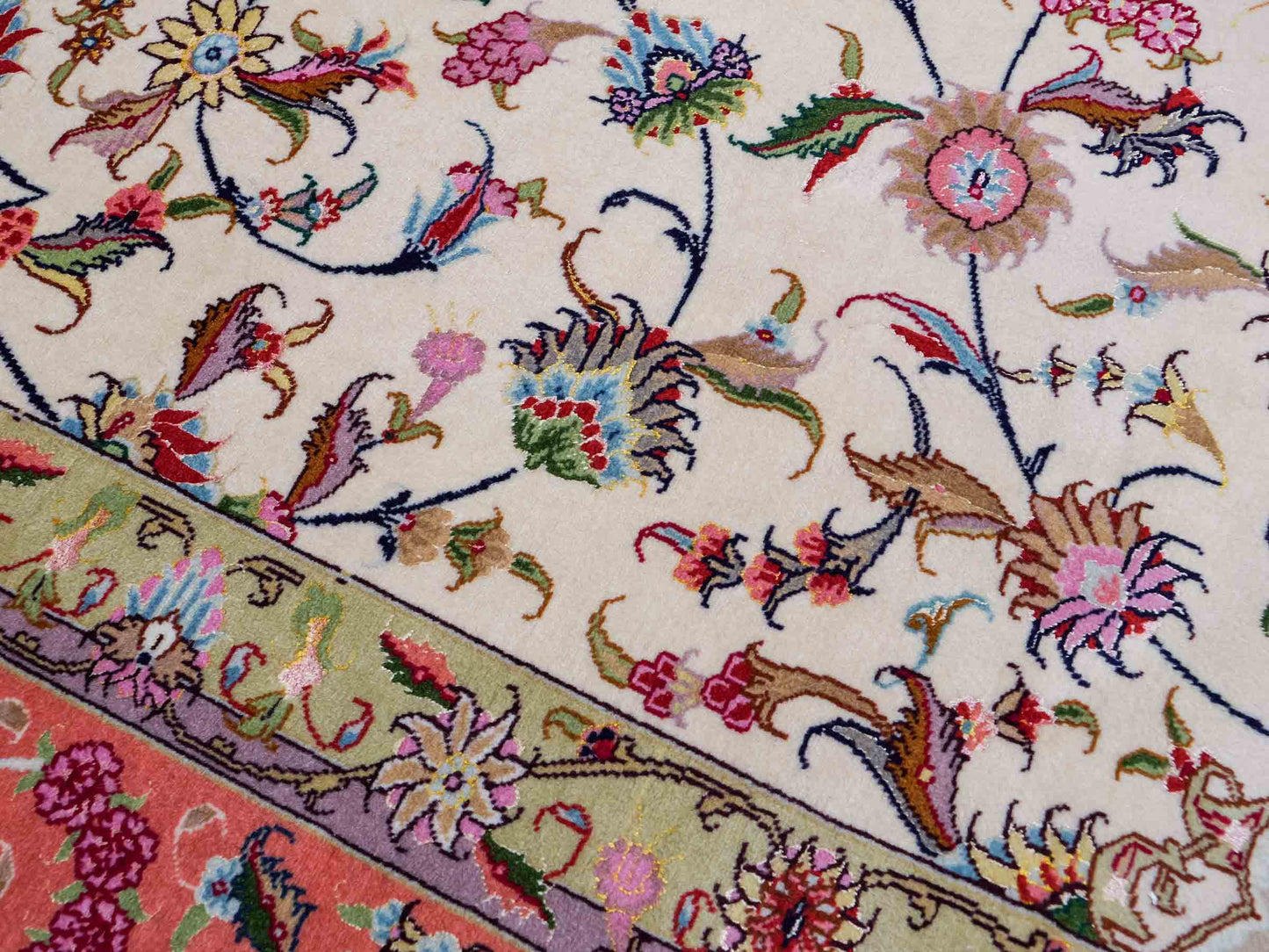 Entdecken Sie die zeitlose Schönheit dieses exquisiten Unikats aus Täbris – einer Region, die für ihre reiche Teppichknüpfkultur bekannt ist.