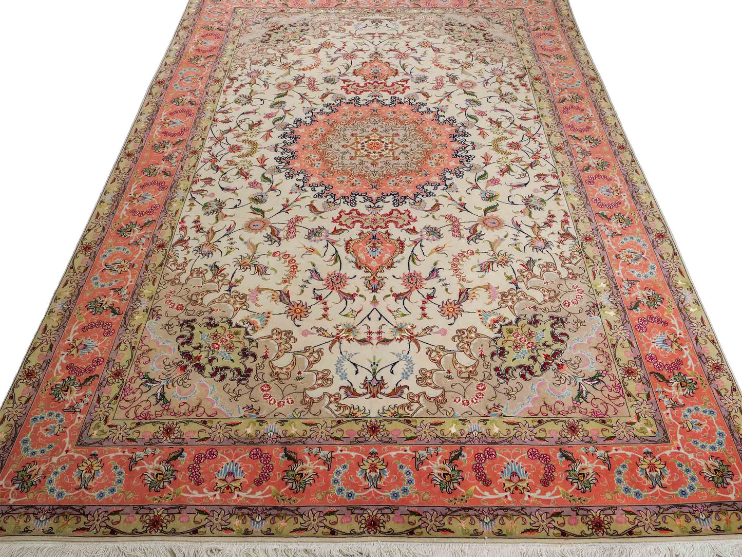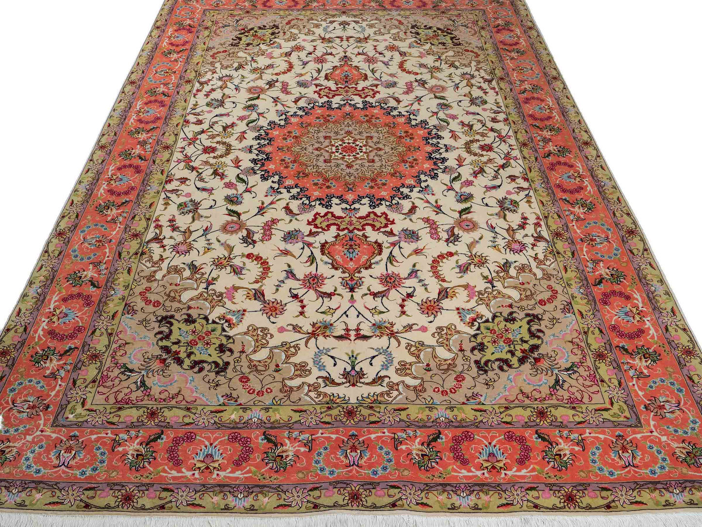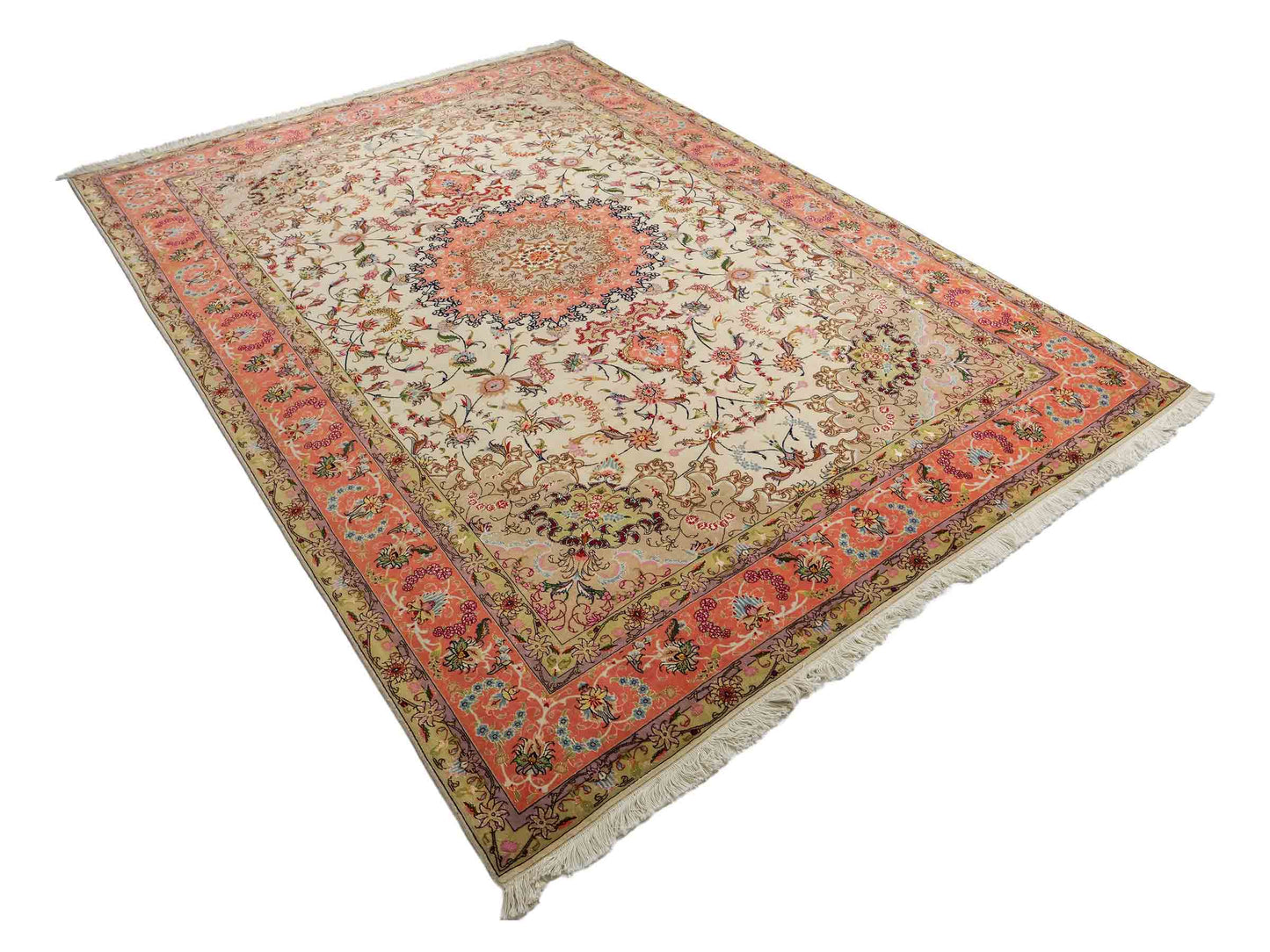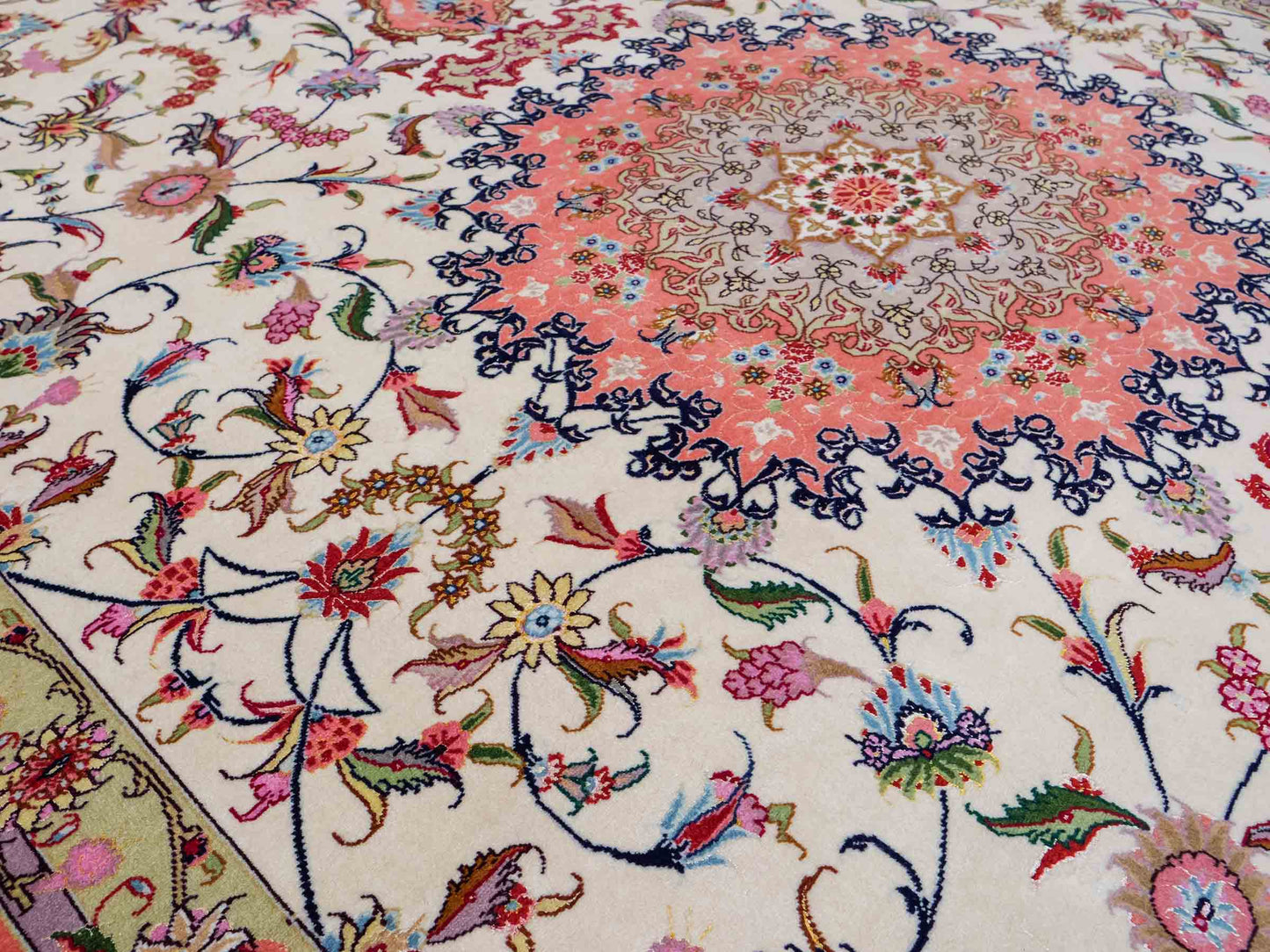 Entdecken Sie die zeitlose Schönheit dieses exquisiten Unikats aus Täbris – einer Region, die für ihre reiche Teppichknüpfkultur bekannt ist.