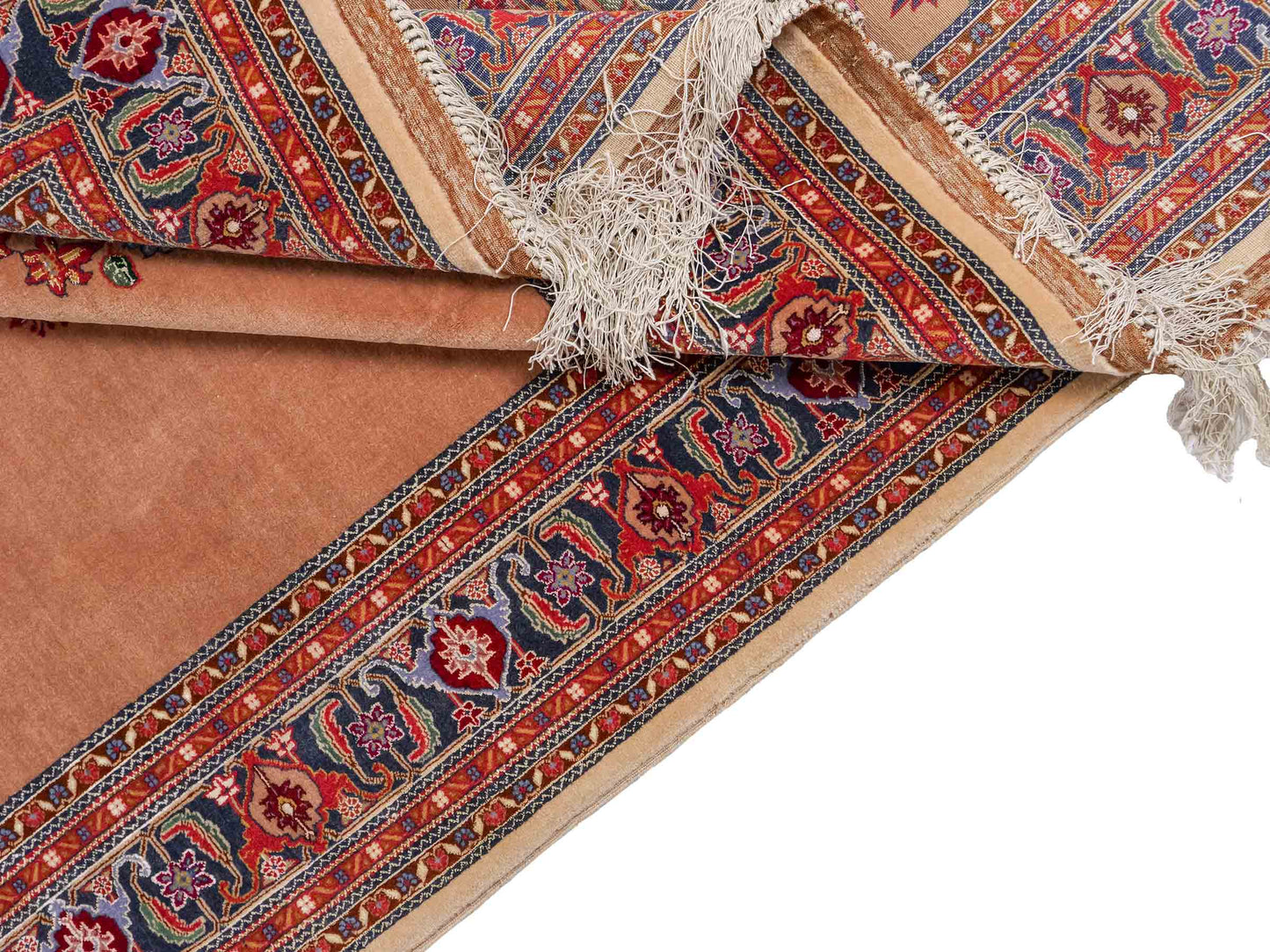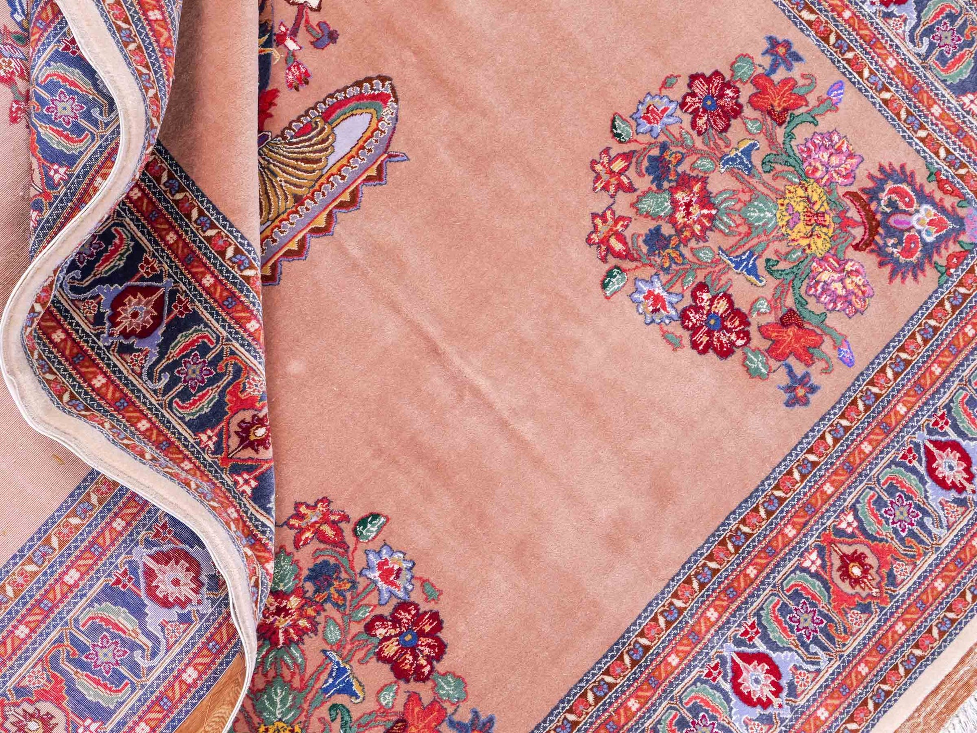 Wool with Silk: These rugs require particularly careful storage, as the combination of wool and silk makes both materials sensitive. Store them in a cool, dry place away from direct sunlight. A constant temperature of about 18 degrees Celsius is ideal. Use breathable cotton dust covers to protect the rug while ensuring ventilation. Regular inspections help to detect mold and pests early.