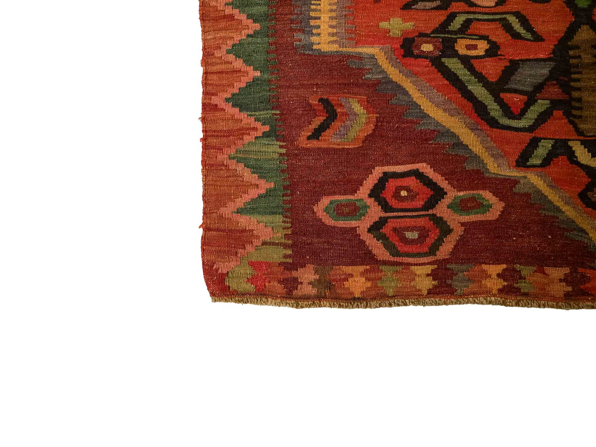 This kilim is part of a long heritage of rug-weaving rooted in nomadic lifestyles. Handcrafted by skilled artisans who have passed down their knowledge through generations, it reflects the region's rich cultural influences and creative diversity.