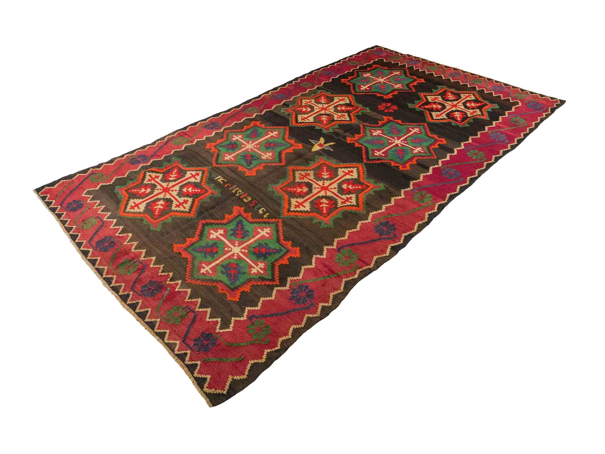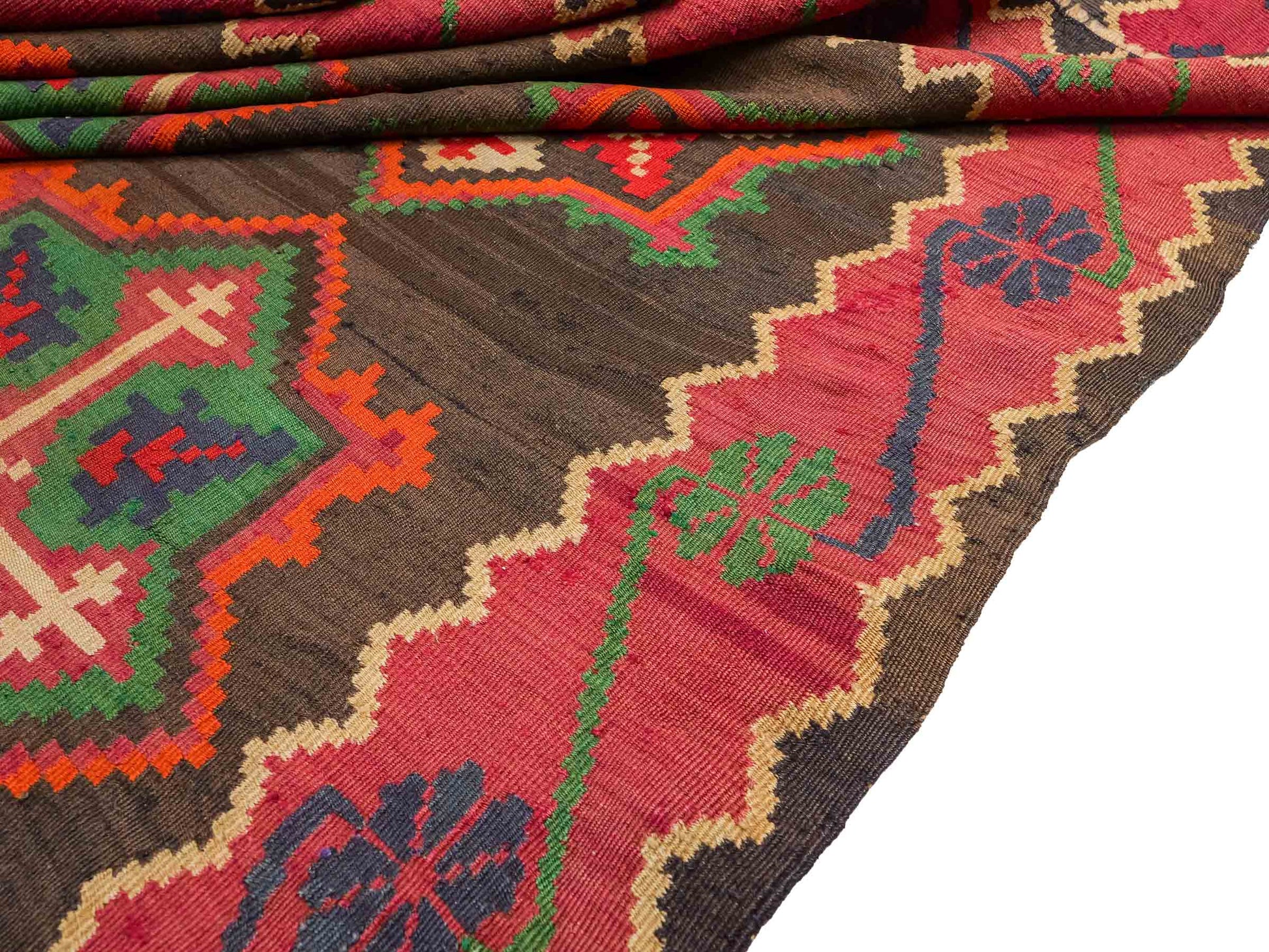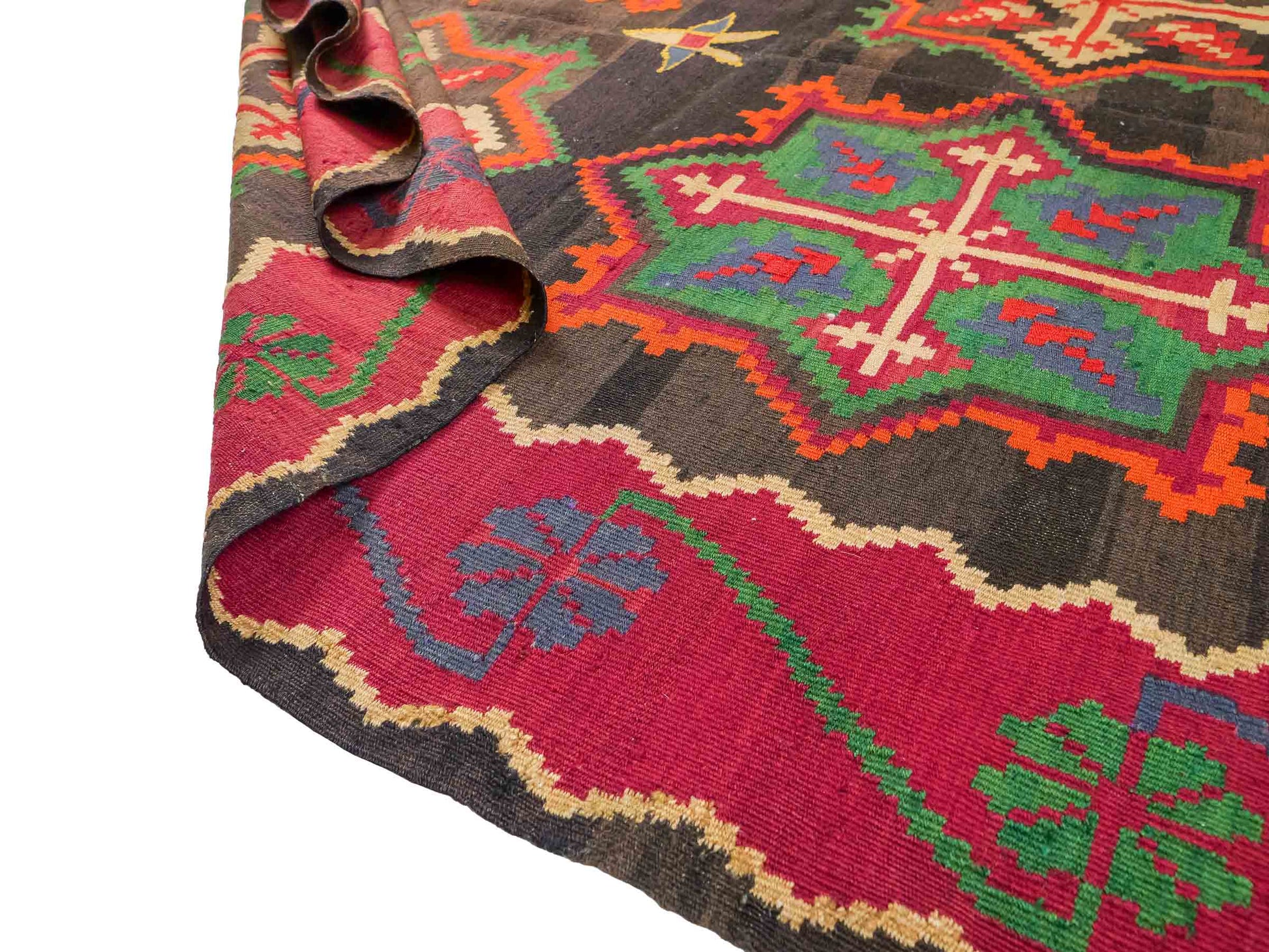 This kilim is rooted in a long-standing weaving tradition inspired by nomadic lifestyles. Handcrafted by skilled artisans whose expertise has been handed down through generations, it reflects the cultural influences and creative diversity of the region.