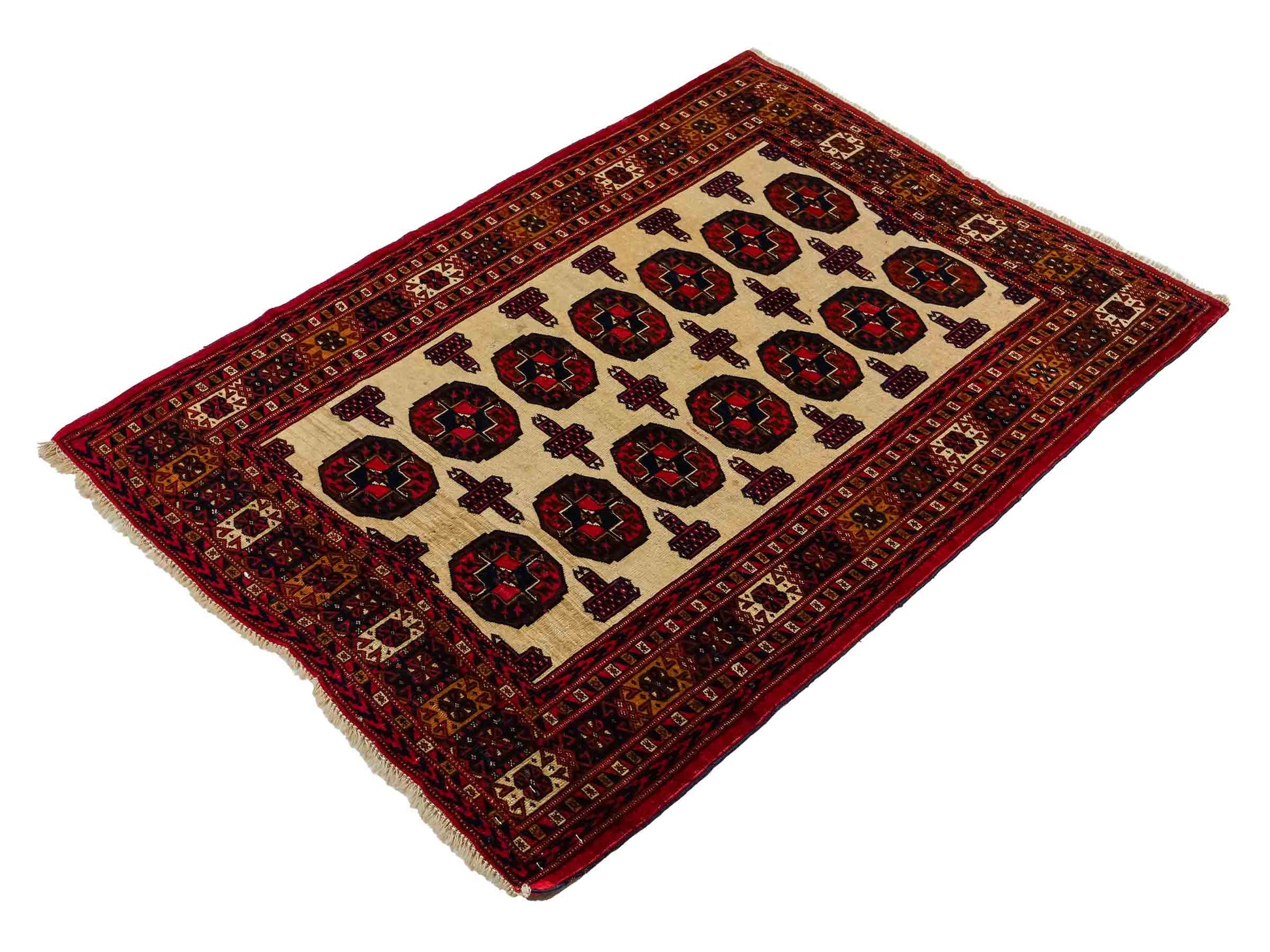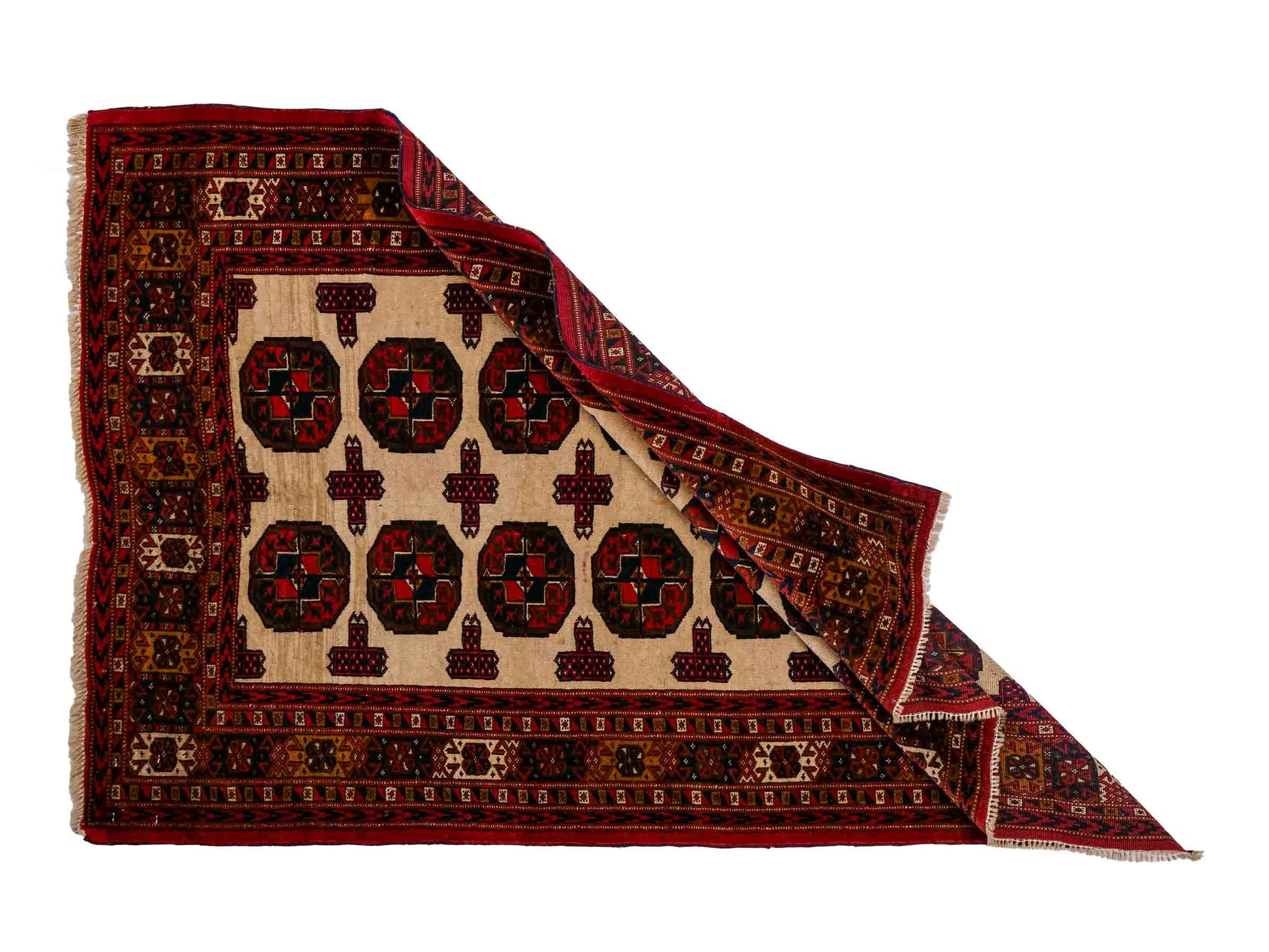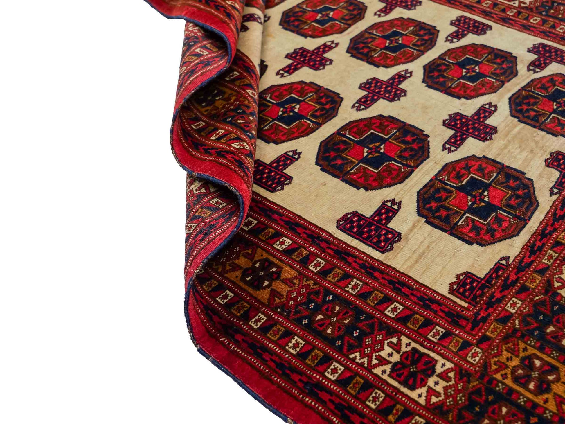 The cream-white ground pattern combined with striking red hues and blue accents makes for a remarkable visual impact. The pile is made from pure wool and the warp from cotton, bringing both softness and resilience. With a knot density of 240,000 knots per square meter, this rug offers not only sophisticated aesthetics but also outstanding durability and intricate detailing.