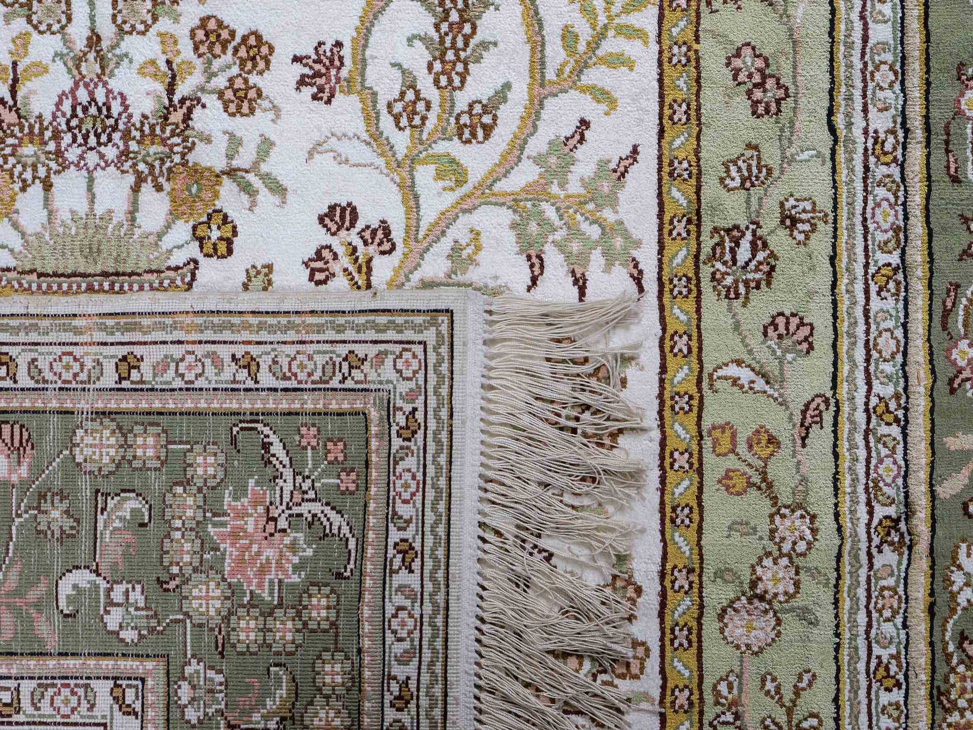 Handcrafted in the traditional way in China, this unique piece impresses with its classic Hereke design and timeless color palette.