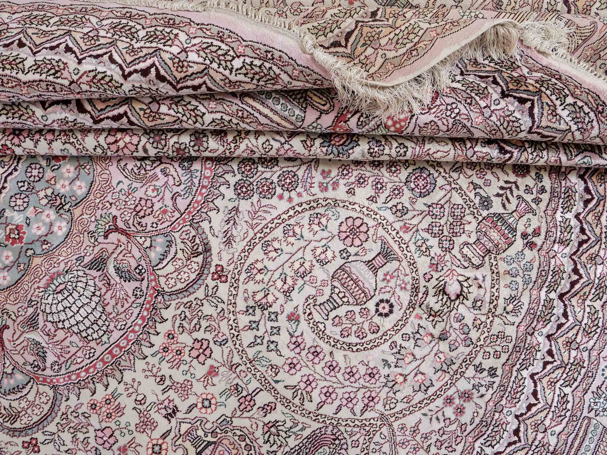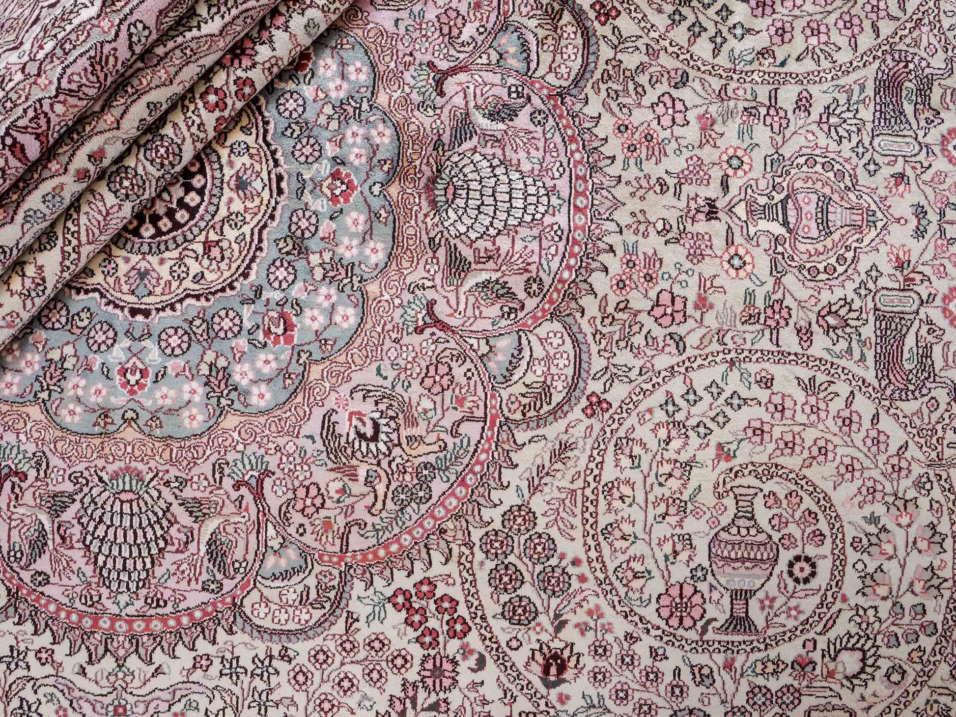 Wool with Silk: These rugs require particularly careful storage, as the combination of wool and silk makes both materials sensitive. Store them in a cool, dry place away from direct sunlight. A constant temperature of about 18 degrees Celsius is ideal. Use breathable cotton dust covers to protect the rug while ensuring ventilation. Regular inspections help to detect mold and pests early.