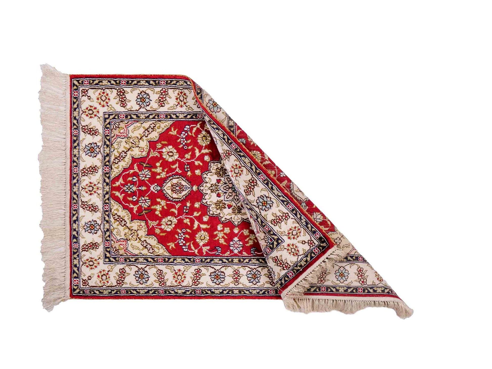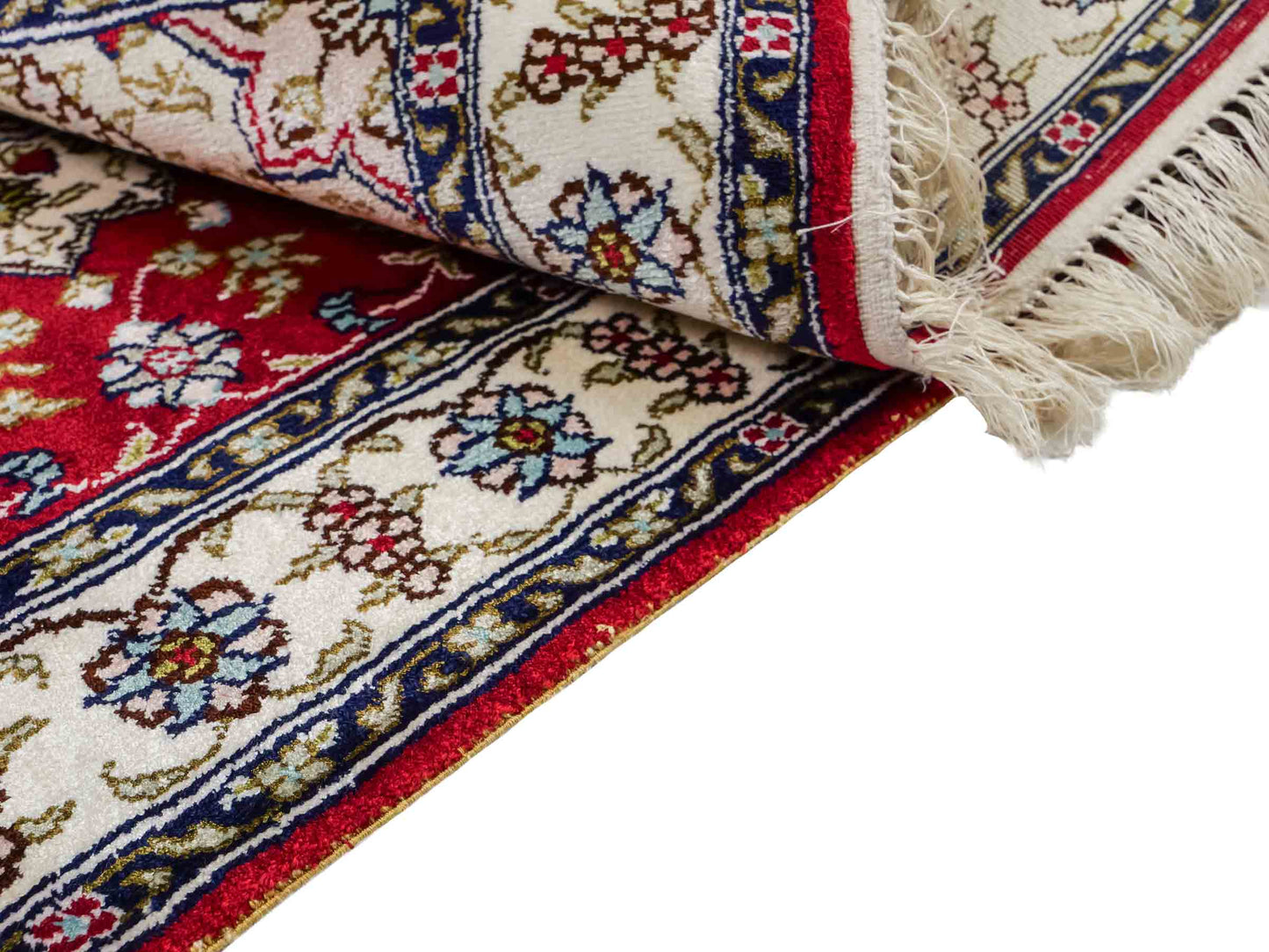 Wool with Silk: These rugs require particularly careful storage, as the combination of wool and silk makes both materials sensitive. Store them in a cool, dry place away from direct sunlight. A constant temperature of about 18 degrees Celsius is ideal. Use breathable cotton dust covers to protect the rug while ensuring ventilation. Regular inspections help to detect mold and pests early.