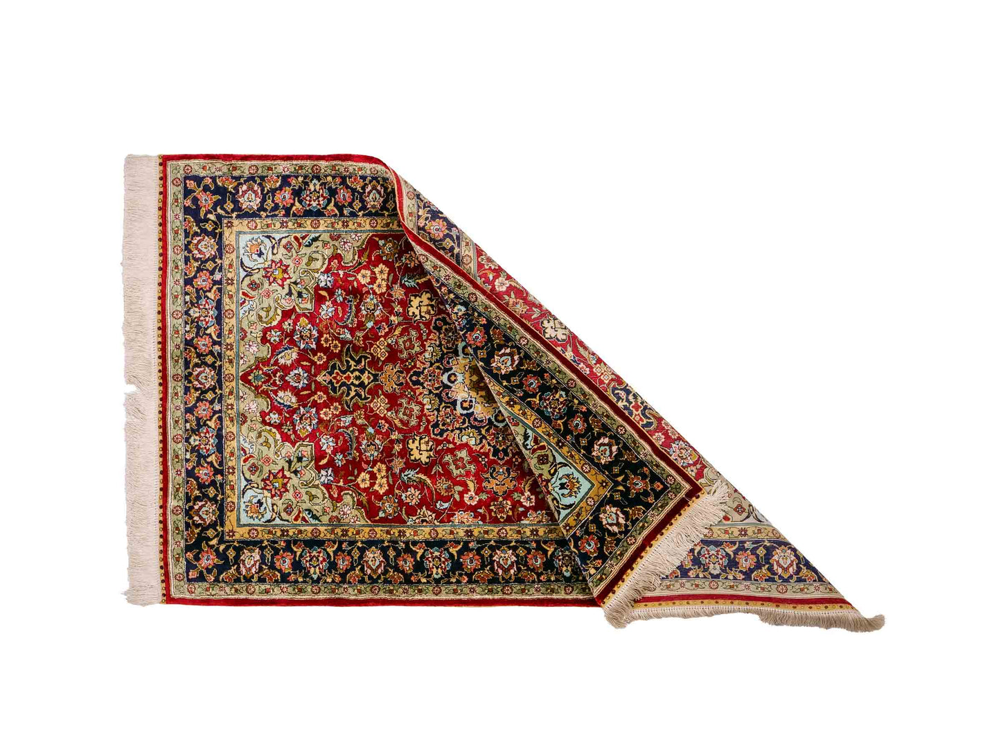 Wool with Silk: These rugs require particularly careful storage, as the combination of wool and silk makes both materials sensitive. Store them in a cool, dry place away from direct sunlight. A constant temperature of about 18 degrees Celsius is ideal. Use breathable cotton dust covers to protect the rug while ensuring ventilation. Regular inspections help to detect mold and pests early.