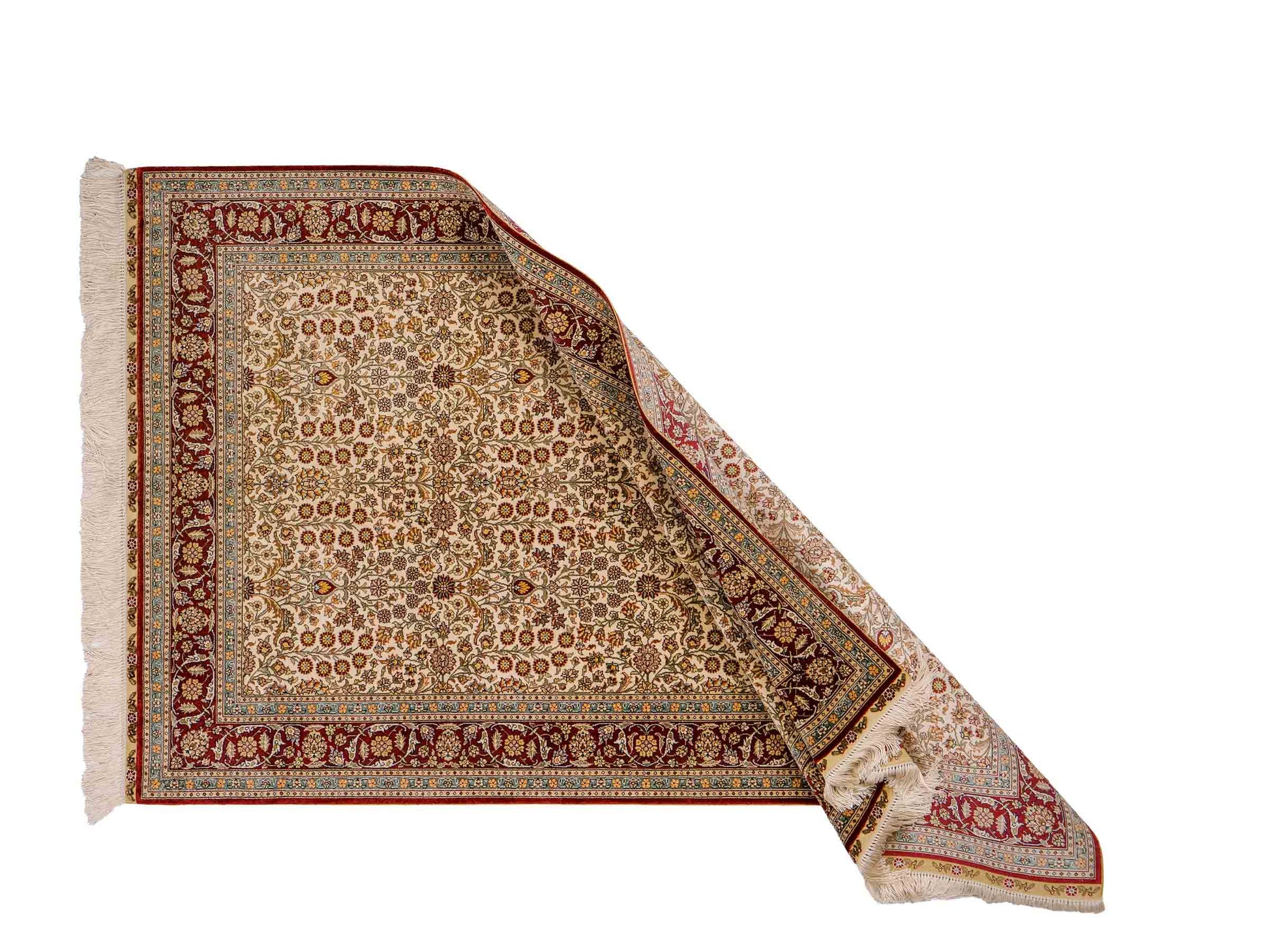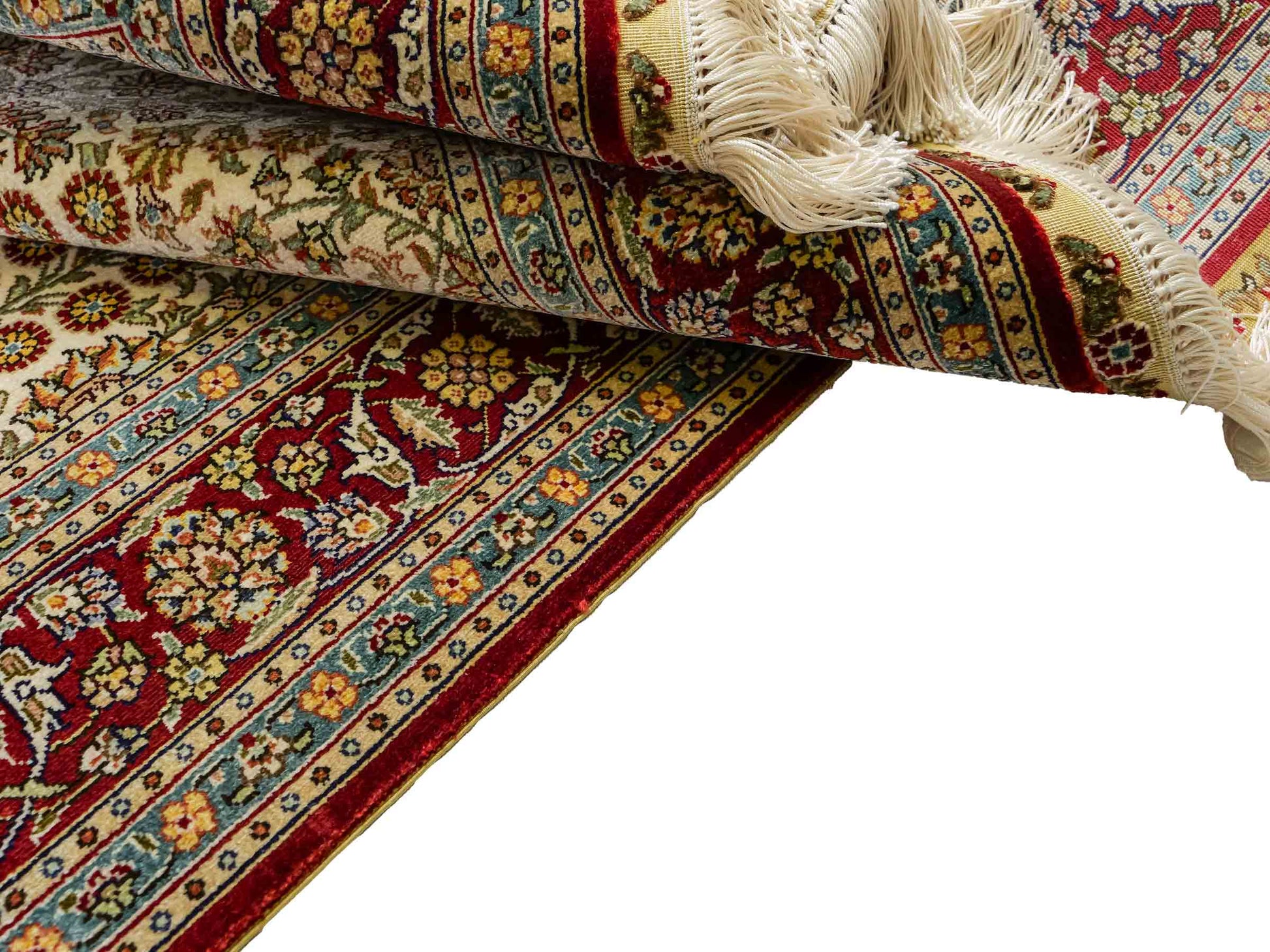Wool with Silk: These rugs require particularly careful storage, as the combination of wool and silk makes both materials sensitive. Store them in a cool, dry place away from direct sunlight. A constant temperature of about 18 degrees Celsius is ideal. Use breathable cotton dust covers to protect the rug while ensuring ventilation. Regular inspections help to detect mold and pests early.