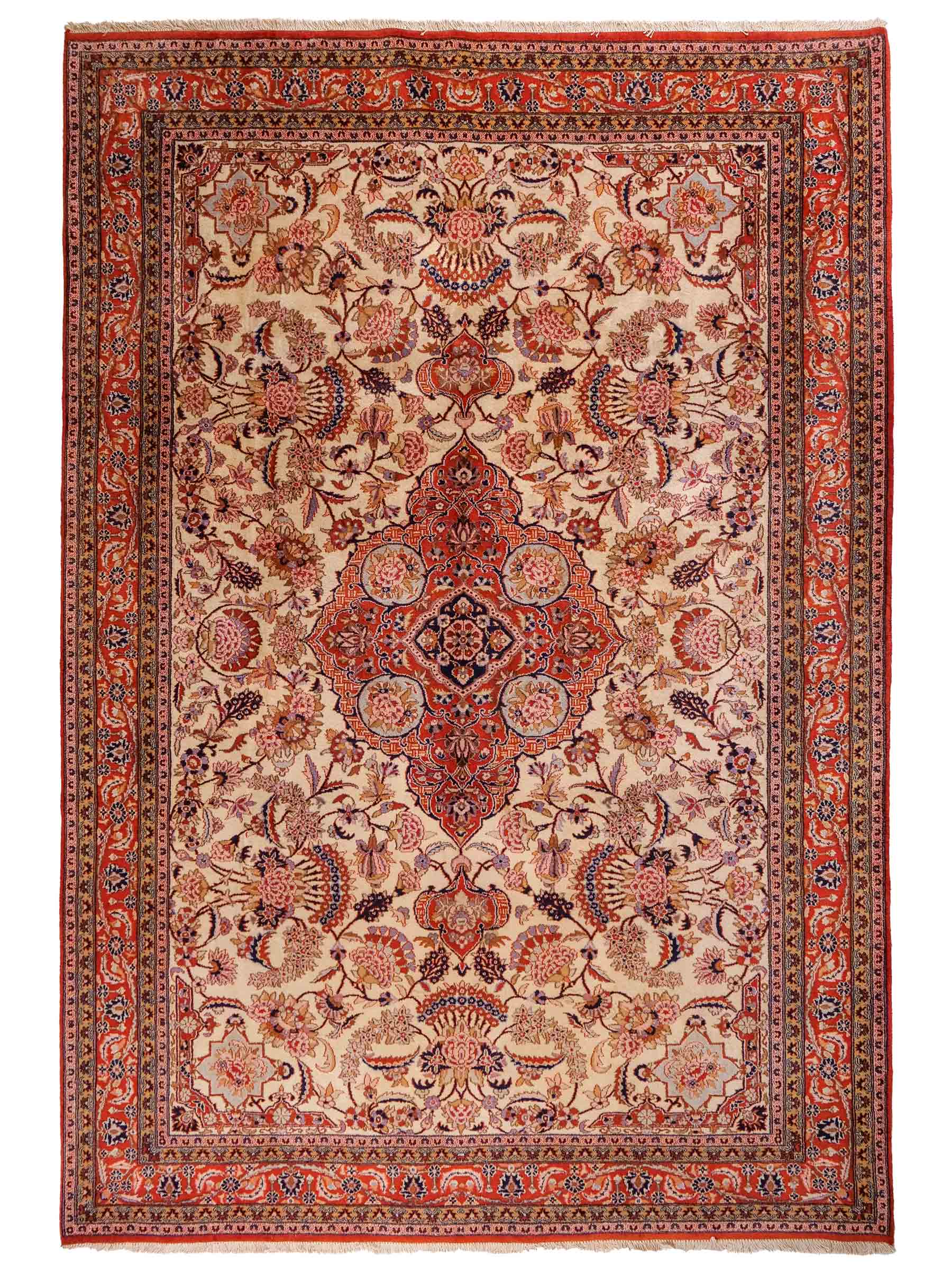 This rug stands out thanks to the use of the finest wool, meticulously processed prior to weaving to ensure durability and warmth. Combined with a high knot density, it guarantees lasting quality and brings out its classic Tabriz design with all its floral motifs, geometric shapes, and central medallion in the best light.
