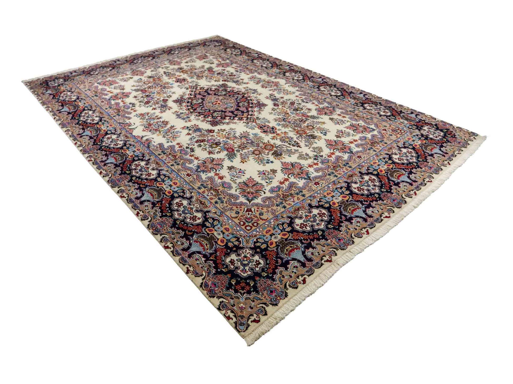 This hand-knotted one-of-a-kind rug from Iran’s second largest city, Mashhad, is made from the finest sheep’s wool and impresses with its exceptional durability and resilience.