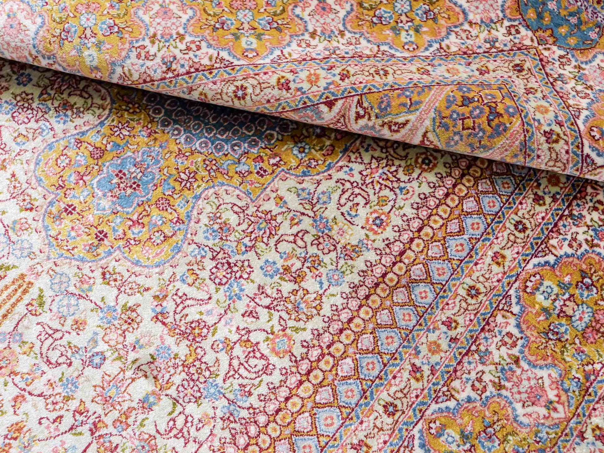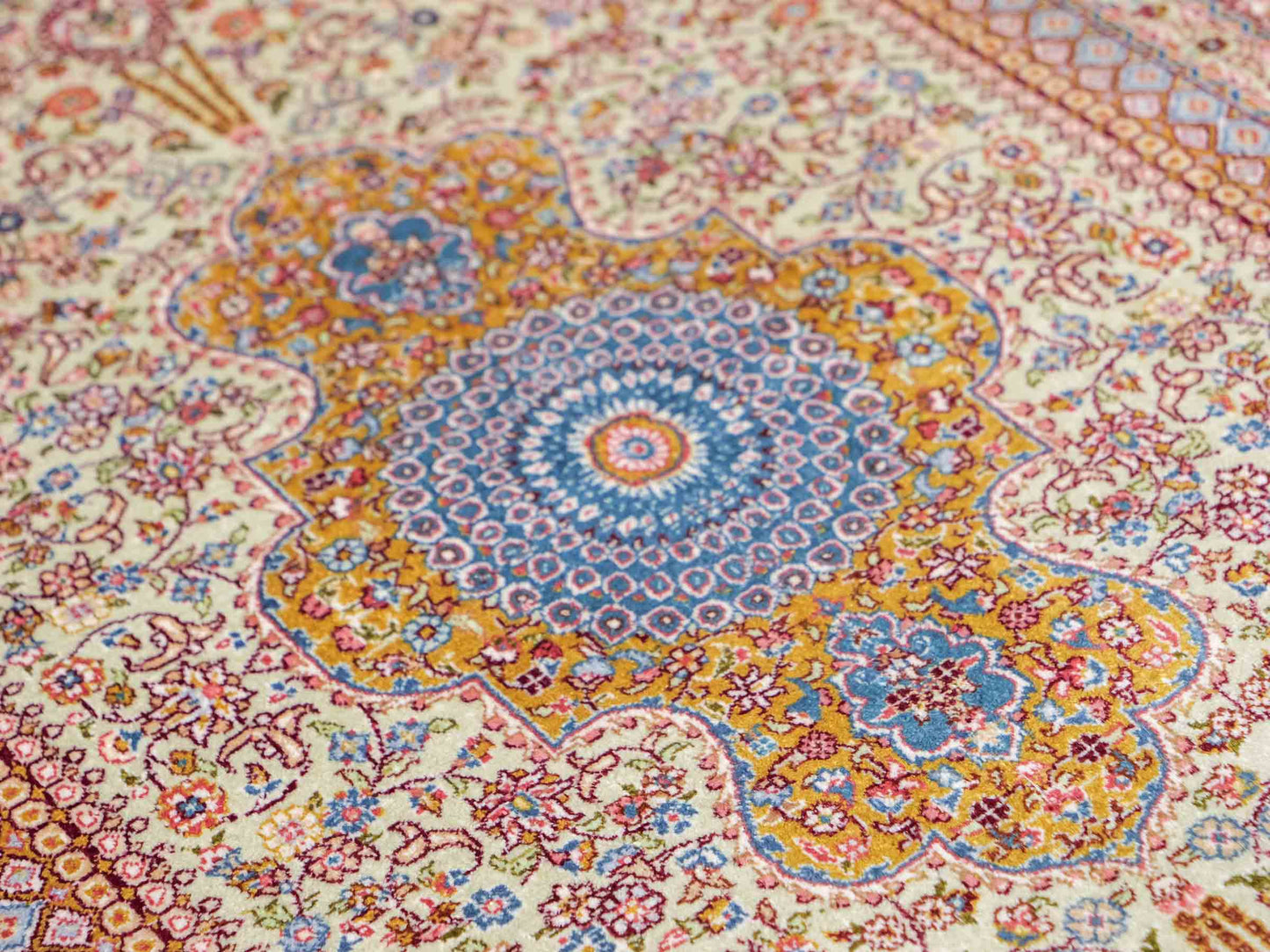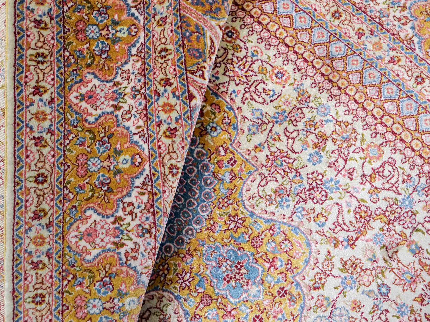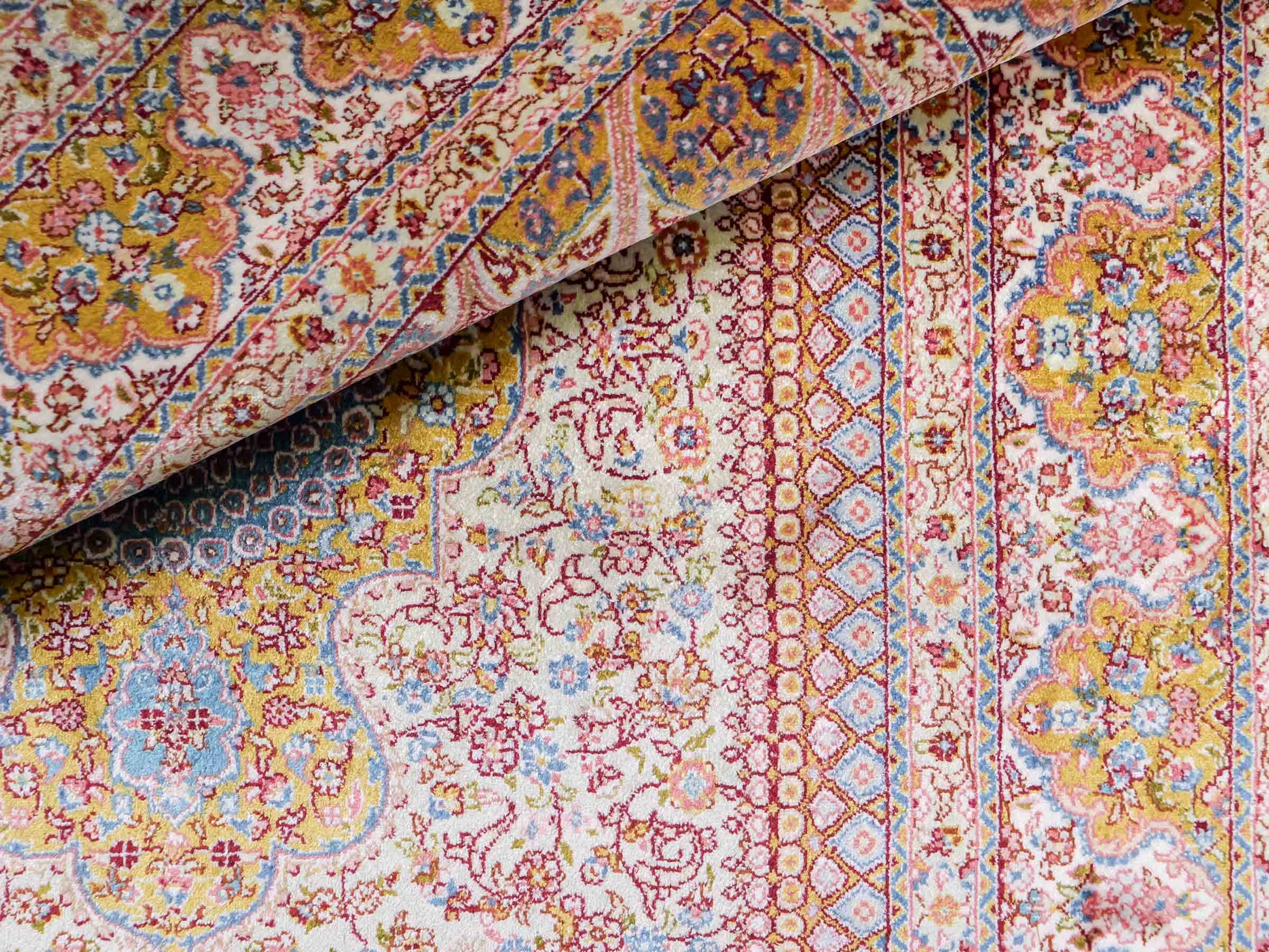 Wool with Silk: These rugs require particularly careful storage, as the combination of wool and silk makes both materials sensitive. Store them in a cool, dry place away from direct sunlight. A constant temperature of about 18 degrees Celsius is ideal. Use breathable cotton dust covers to protect the rug while ensuring ventilation. Regular inspections help to detect mold and pests early.