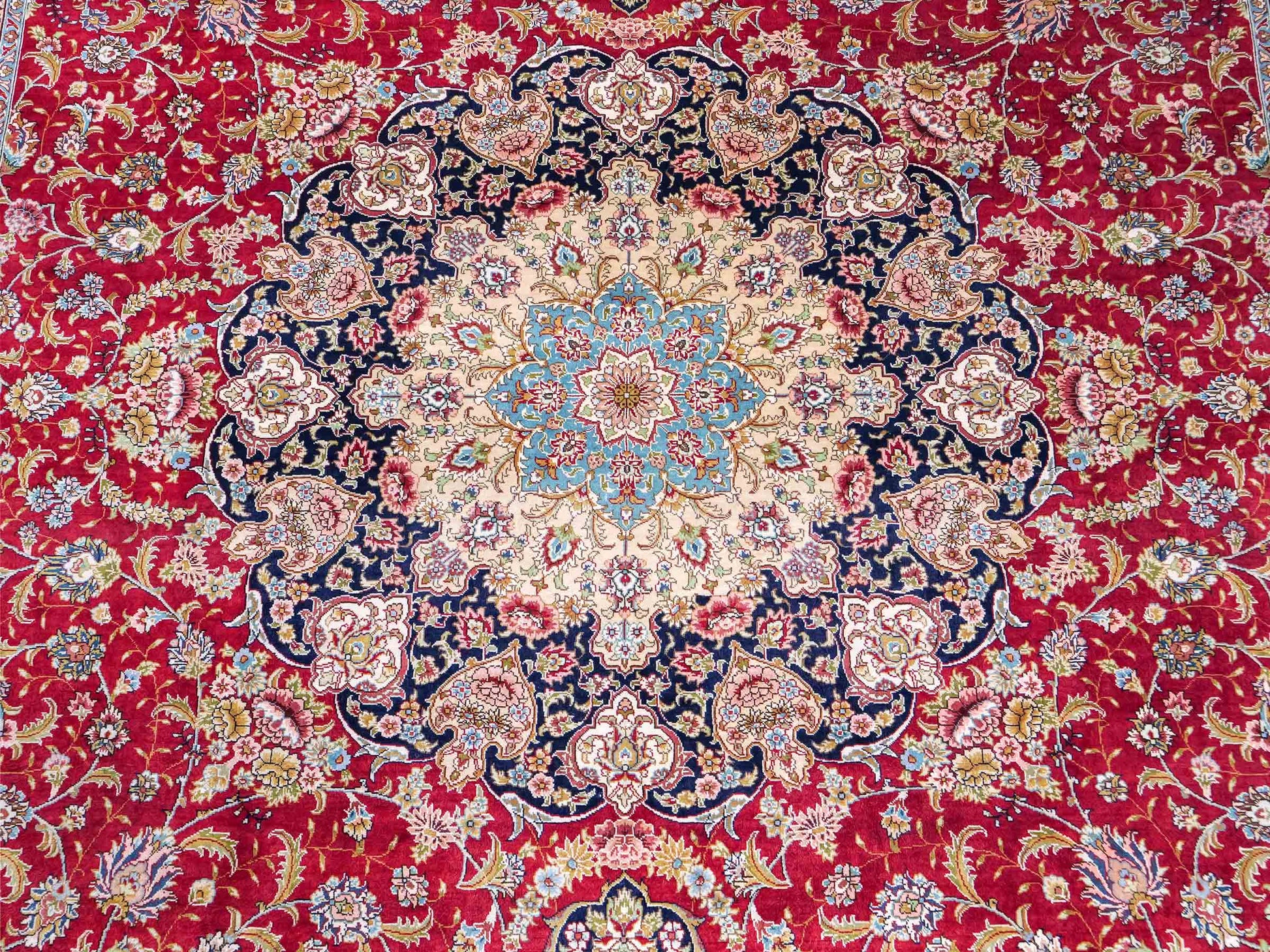 Silk rugs should never get wet, as water can severely damage their delicate fibers and colors. Moisture can lead to deformation, color loss, and fiber weakening. If the rug accidentally comes into contact with liquid, immediately blot the area with a clean, absorbent cloth and avoid vigorous rubbing. The rug should be air-dried as quickly as possible, without direct sunlight or heat sources, to prevent further damage. In severe cases, professional help is strongly recommended.