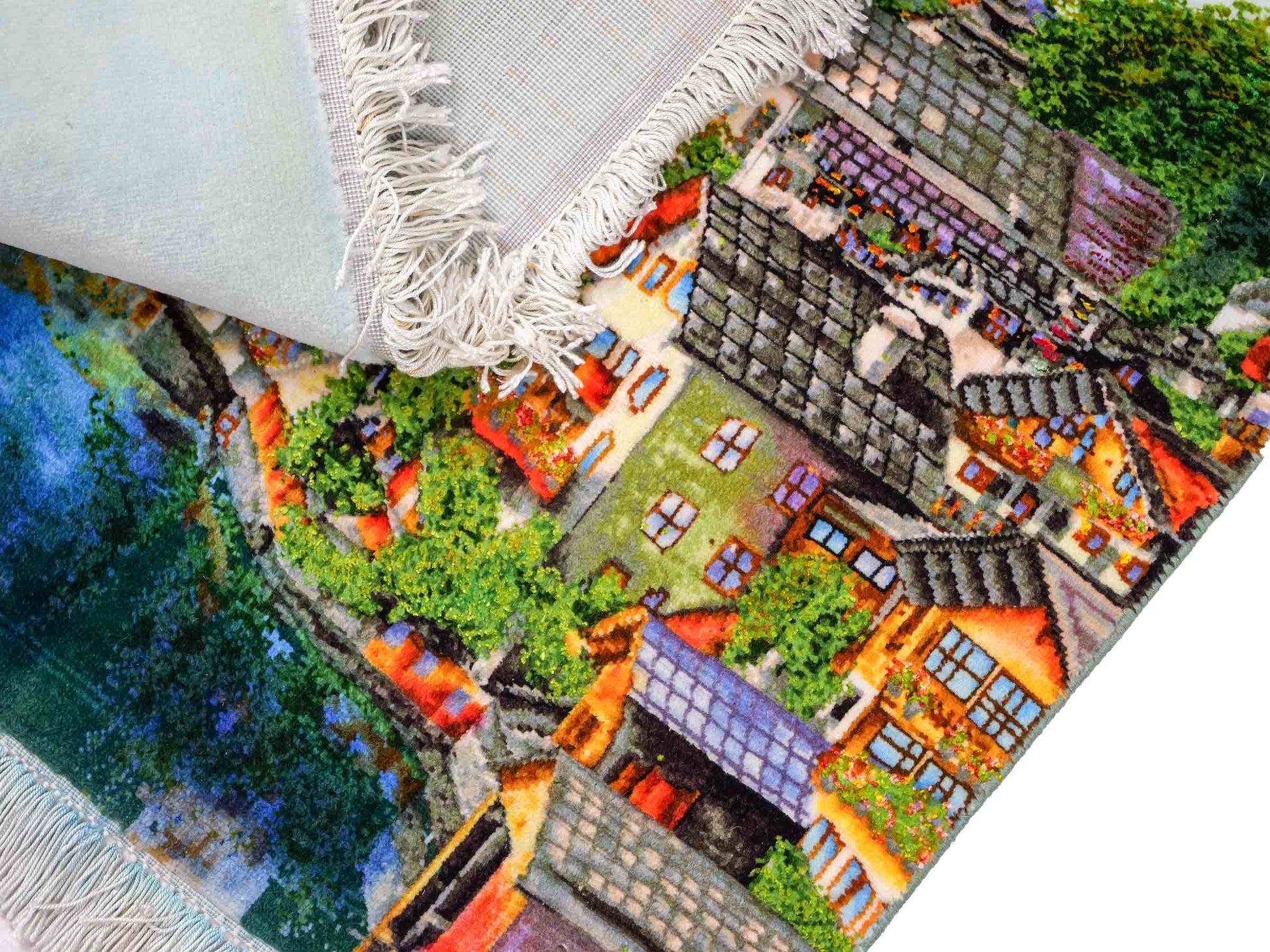 Tabriz art pictorial rugs are the product of centuries-old knotting tradition in the Iranian city of Tabriz, a region that rose to fame through the Silk Road. This area is renowned for its sophisticated rug production, blending masterful craftsmanship with deep cultural wealth. Each piece features a remarkable knot density, which speaks to the outstanding quality and durability of these unique rugs.