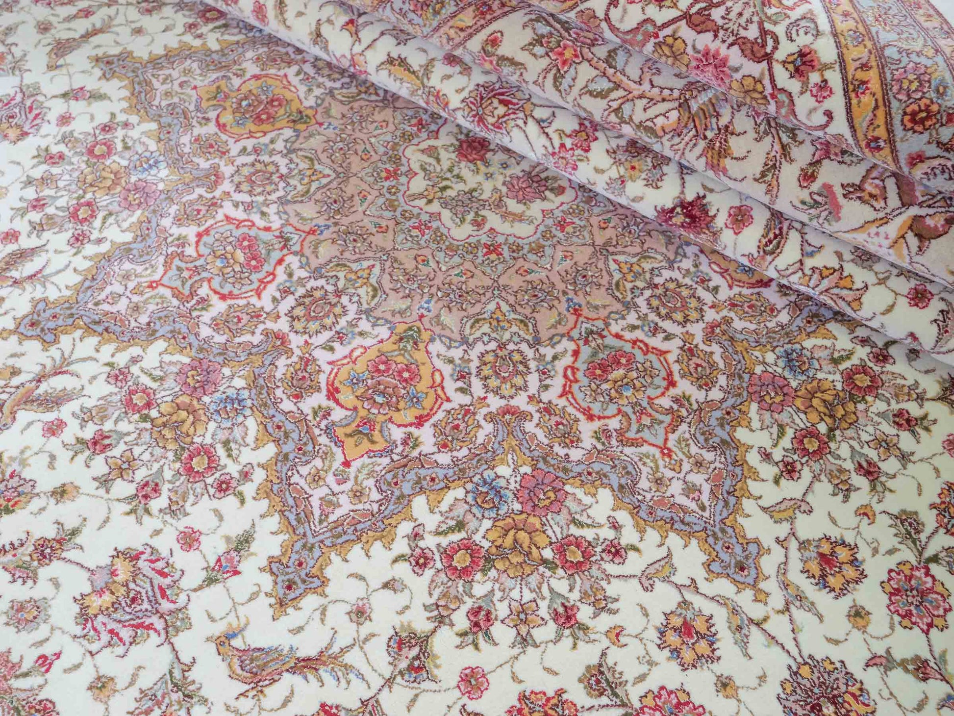 Wool with Silk: These rugs require particularly careful storage, as the combination of wool and silk makes both materials sensitive. Store them in a cool, dry place away from direct sunlight. A constant temperature of about 18 degrees Celsius is ideal. Use breathable cotton dust covers to protect the rug while ensuring ventilation. Regular inspections help to detect mold and pests early.