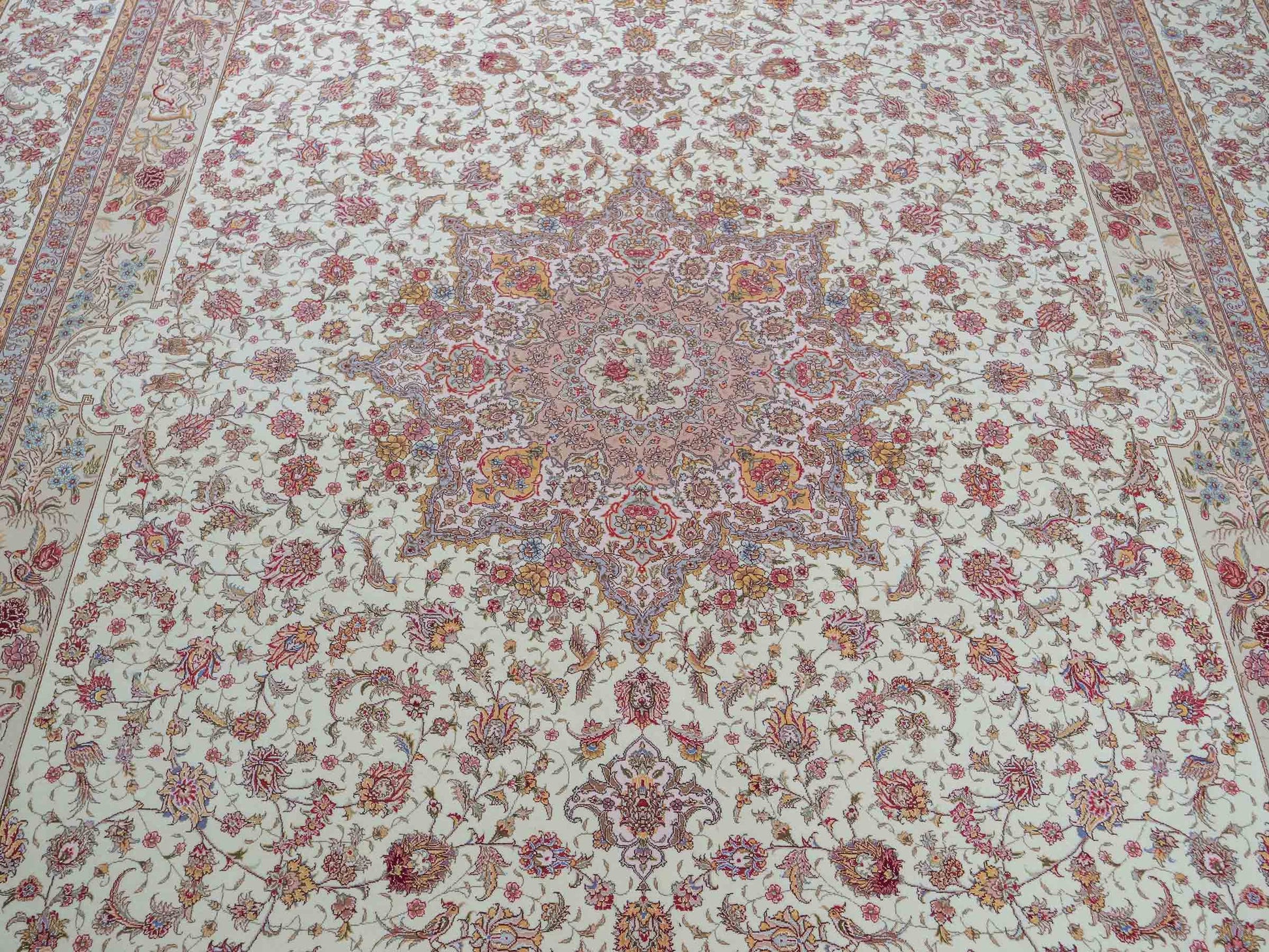 Silk rugs should never get wet, as water can severely damage their delicate fibers and colors. Moisture can lead to deformation, color loss, and fiber weakening. If the rug accidentally comes into contact with liquid, immediately blot the area with a clean, absorbent cloth and avoid vigorous rubbing. The rug should be air-dried as quickly as possible, without direct sunlight or heat sources, to prevent further damage. In severe cases, professional help is strongly recommended.
