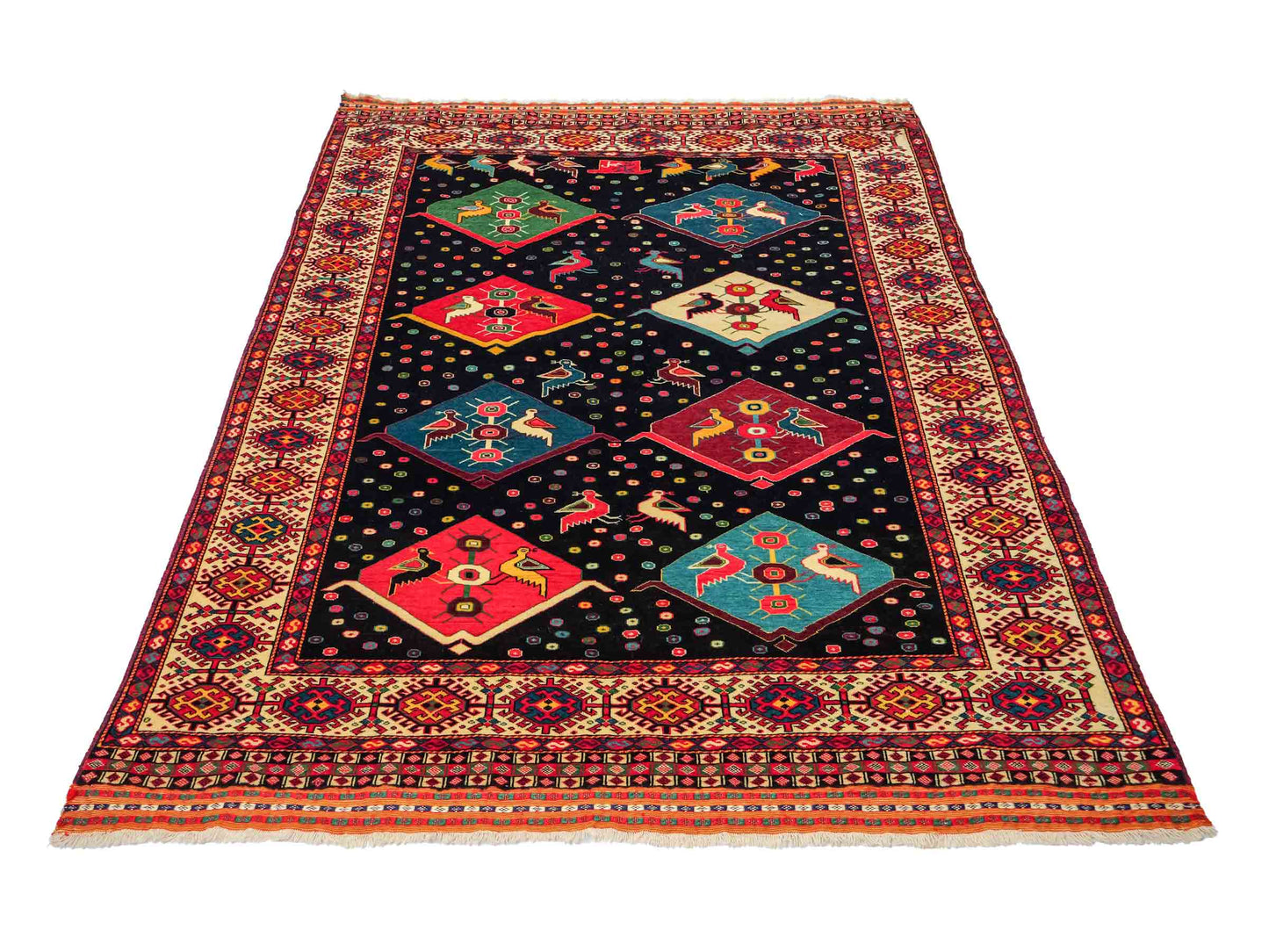 The beauty of Afghan rugs is expressed in their vibrant colors and variety of designs, often inspired by nature and local cultural life. They are made from high-quality wool, valued for its soft texture and durability. With a knot density of 100,000 to 300,000 knots per square meter, these rugs offer precise detailing and superior longevity.